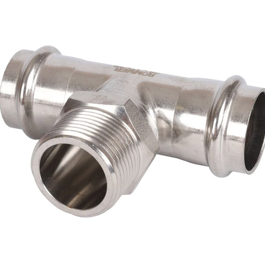 Тройник равнопроходной Rommer (Роммер) ВПр, 15, из нержавеющей стали прессовой (RSS-0013-000015)