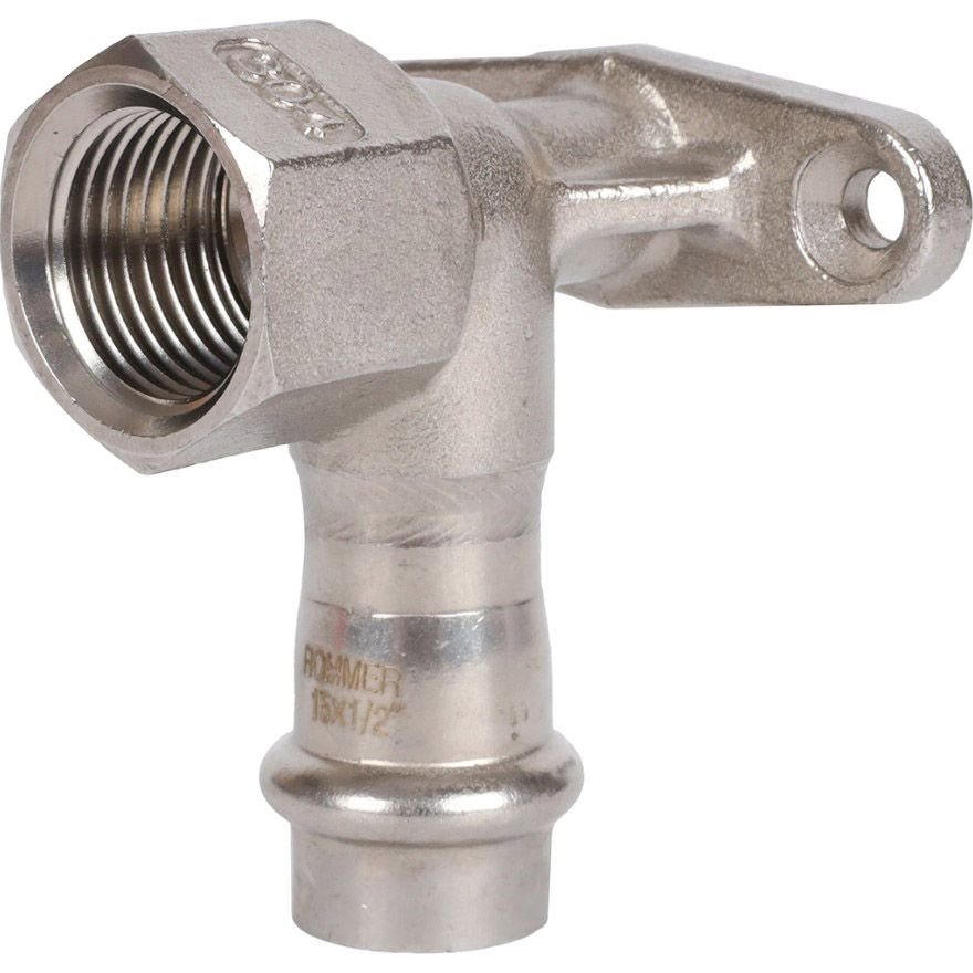 Угольник настенный с креплением Rommer (Роммер) ВПр-ВР, 22х1/2, из нержавеющей стали прессовой (RSS-0011-002212)
