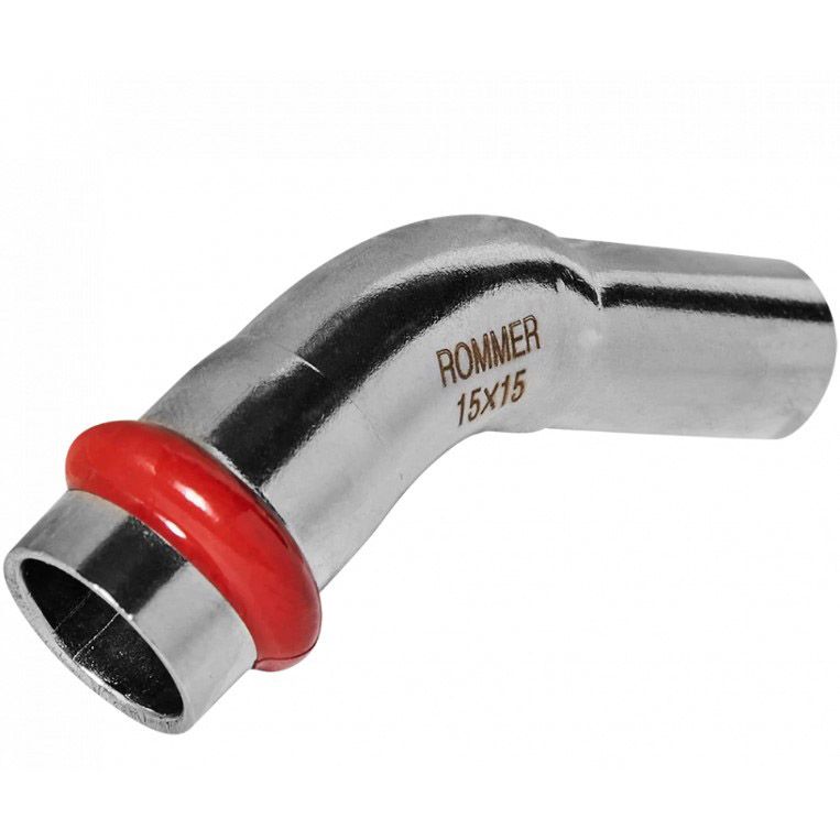Угольник однораструбный Rommer (Роммер) 45° из нержавеющей стали прессовой ВПр-НПр 15 мм (RSS-0004-000015)
