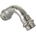 (VTi.951.I) Двухраструбный пресс-угольник из нержавеющей стали обеспечивает соединение под углом 90° тонкостенных стальных труб систем водоснабжения, отопления, иных инженерных и технологических установок с рабочей температурой до 120 °С и давлением до 16 бар. Изделие изготовлено из стали AISI 304. Материал уплотнительных колец – эластомер EPDM. Отдельно можно приобрести уплотнительные кольца из FPM (витон); в этом случае максимальная рабочая температура увеличивается до 140 °С.