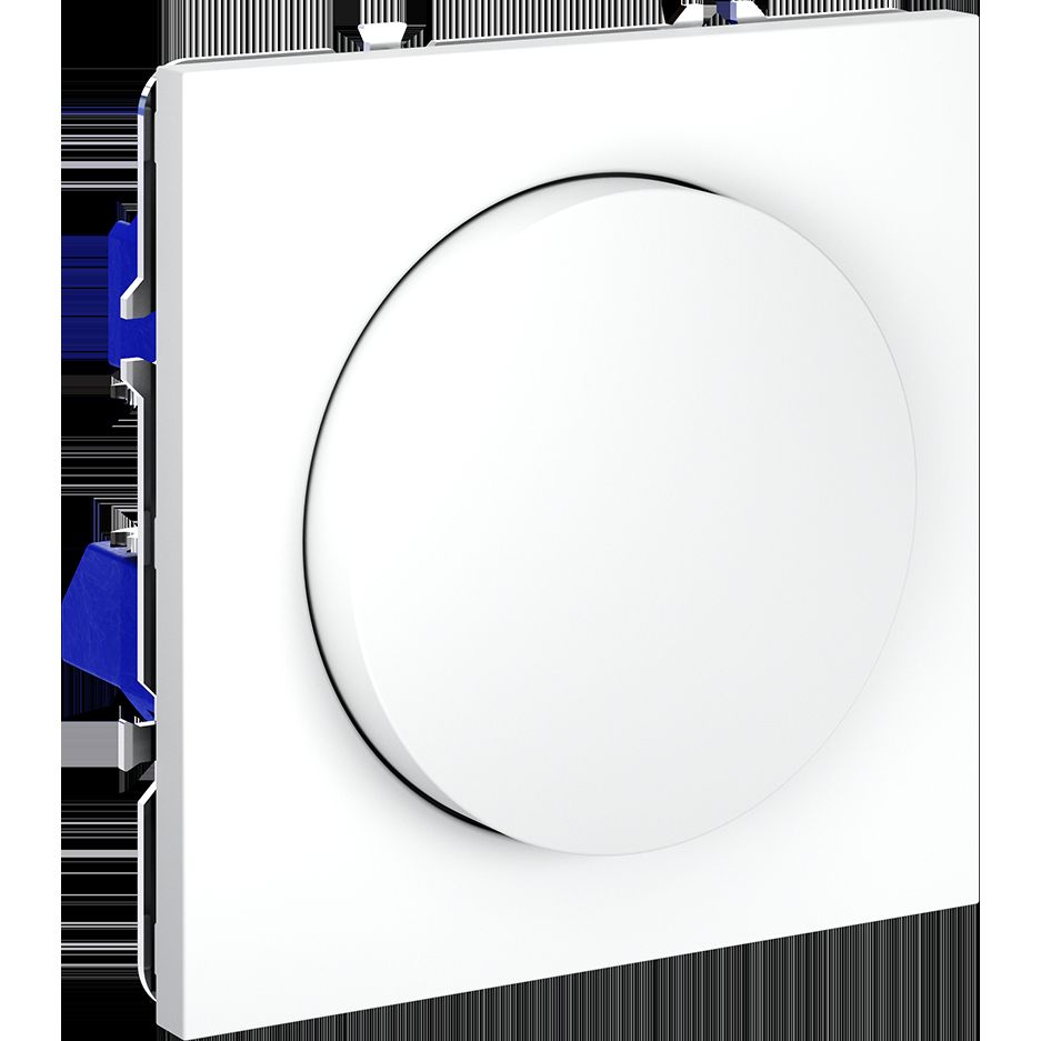 Светорегулятор необходим для управления яркостью освещения в помещении. Устройство совместимо с любым источником света, поддерживающим фазное диммирование. Корпус. Светорегулятор выполнен в виде вращающейся кнопки, позволяющей регулировать яркость в широком диапазоне. При нажатии на нее устройство работает как выключатель (включает/выключает освещение). Корпус — устойчивый к повреждениям и нагреву поликарбонат. Конструктивные особенности. Максимальная резистивная нагрузка светорегулятора — 300 Вт, минимальная — 5 Вт. Можно подключить устройство как обычный выключатель или по проходной схеме. Диммирование базируется на методе отсечения по заднему фронту, что гарантирует совместимость со светодиодными лампами и исключает появление резких колебаний напряжения. Ток увеличивается плавно, что особенно важно для сохранения производительности и долговечности светодиодных источников. Предусмотрена регулировка ограничения минимального уровня яркости (под накладкой механизма).