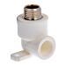 (VTp.755.0) Комбинированный угловой фитинг с креплением (полипропиленовая водорозетка), предназначенный для подсоединения к полипропиленовому трубопроводу сантехнического смесителя или другого компонента инженерной системы с резьбовым подключением. Резьба фитинга – наружная трубная по ГОСТу 6357, 1/2.