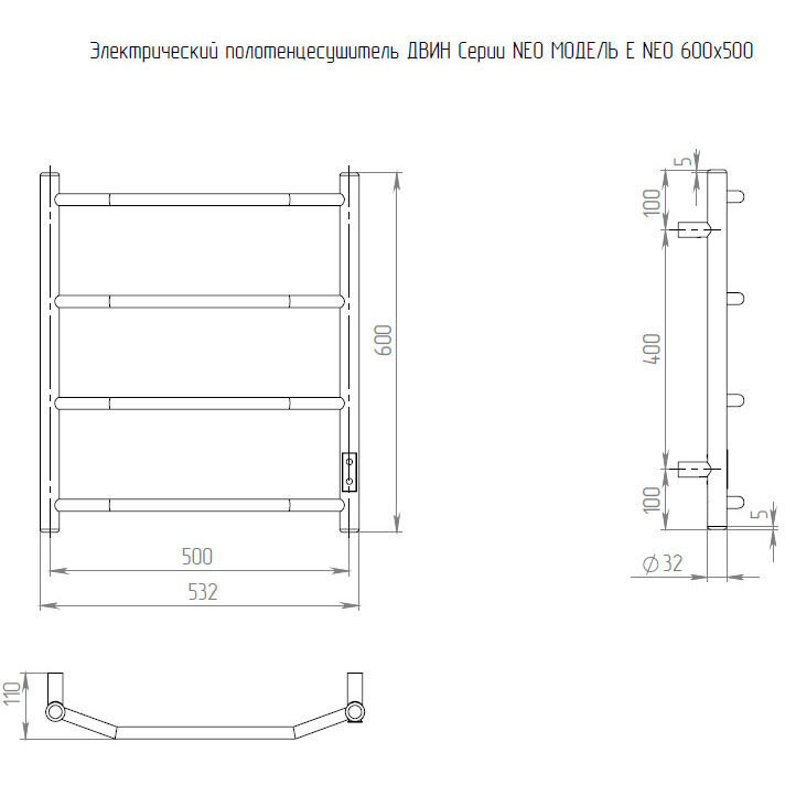Доставка Полотенцесушитель электрический Двин (Dveen) E neo 60х50 см, К диммер полированный хром из Москва в районы и города ЮВАО, ЮЗАО, ЮАО, Новомосковский АО, Одинцово, Подольск, Щербинка, Троицк, Строительный рынок Славянский мир, 41-й км МКАД, бывшая Мельница, Красногорск, Домодедово, Тёплый стан, Коммунарка, Мосрентген, Видное, Мамыри, Краснознаменск