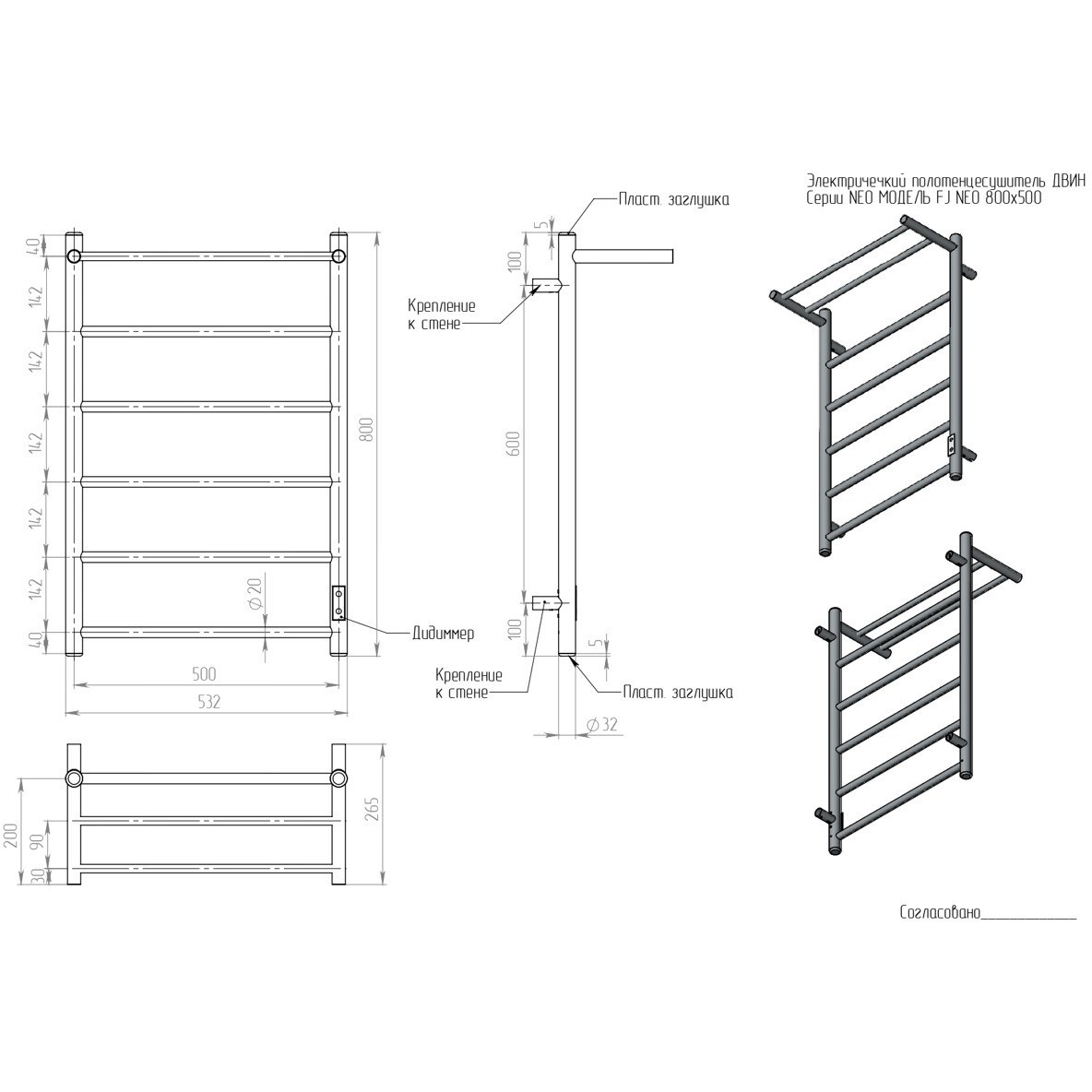 Полотенцесушитель электрический Двин (Dveen) FR neo 80х50 см, с полкой, К диммер графит