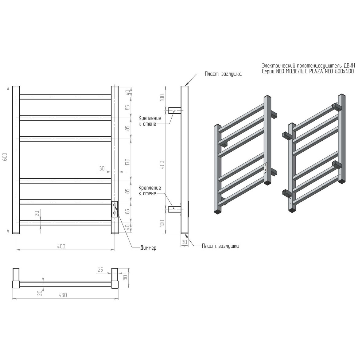 Доставка Полотенцесушитель электрический Двин (Dveen) L plaza neo 60х40 см, без полки, К диммер полированный хром из Москва в районы и города ЮВАО, ЮЗАО, ЮАО, Новомосковский АО, Одинцово, Подольск, Щербинка, Троицк, Строительный рынок Славянский мир, 41-й км МКАД, бывшая Мельница, Красногорск, Домодедово, Тёплый стан, Коммунарка, Мосрентген, Видное, Мамыри, Краснознаменск