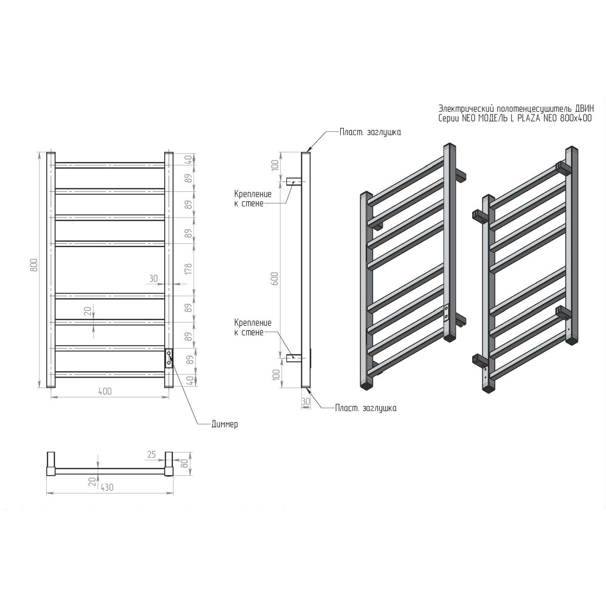 Доставка Полотенцесушитель электрический Двин (Dveen) L plaza neo 80х40 см, без полки, К диммер белый из Москва в районы и города ЮВАО, ЮЗАО, ЮАО, Новомосковский АО, Одинцово, Подольск, Щербинка, Троицк, Строительный рынок Славянский мир, 41-й км МКАД, бывшая Мельница, Красногорск, Домодедово, Тёплый стан, Коммунарка, Мосрентген, Видное, Мамыри, Краснознаменск