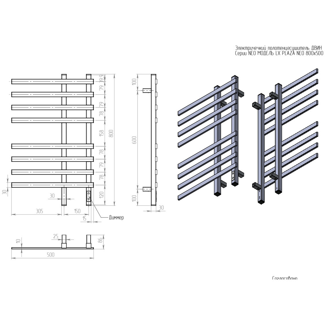 Доставка Полотенцесушитель электрический Двин (Dveen) LX plaza neo 80х50 см, без полки, К диммер, квадрат черный матовый из Москва в районы и города ЮВАО, ЮЗАО, ЮАО, Новомосковский АО, Одинцово, Подольск, Щербинка, Троицк, Строительный рынок Славянский мир, 41-й км МКАД, бывшая Мельница, Красногорск, Домодедово, Тёплый стан, Коммунарка, Мосрентген, Видное, Мамыри, Краснознаменск