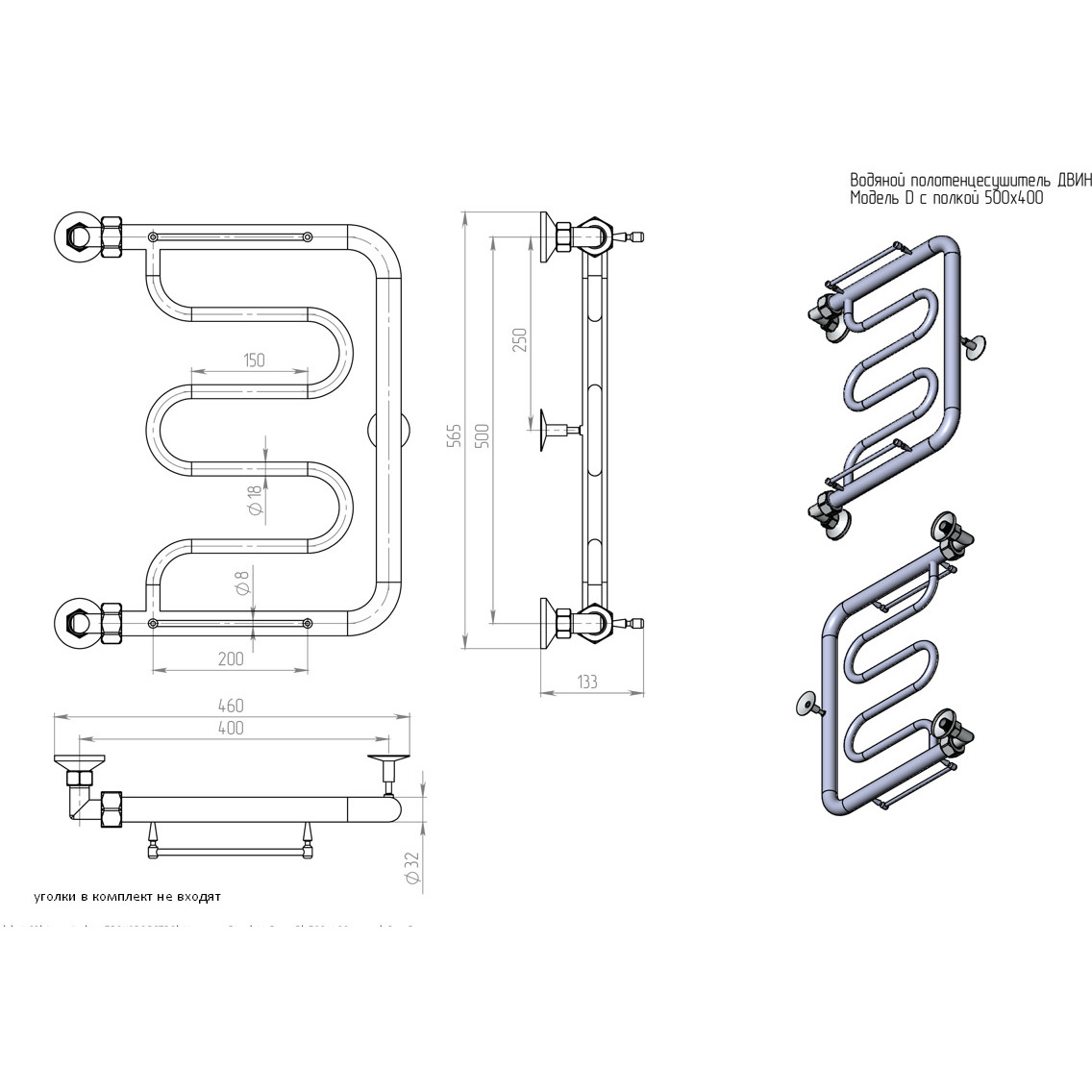 Водяной полотенцесушитель Двин (Dveen) D — это современное решение для обустройства ванной комнаты с лаконичным дизайном и высокой функциональностью. Модель предназначена для подключения к системе центрального или автономного горячего водоснабжения.