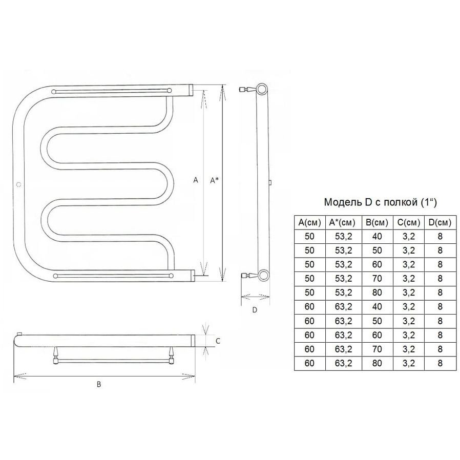 Полотенцесушитель водяной Двин (Dveen) D 50х80 см, c полкой, 1х1/2″ К0 полированный хром