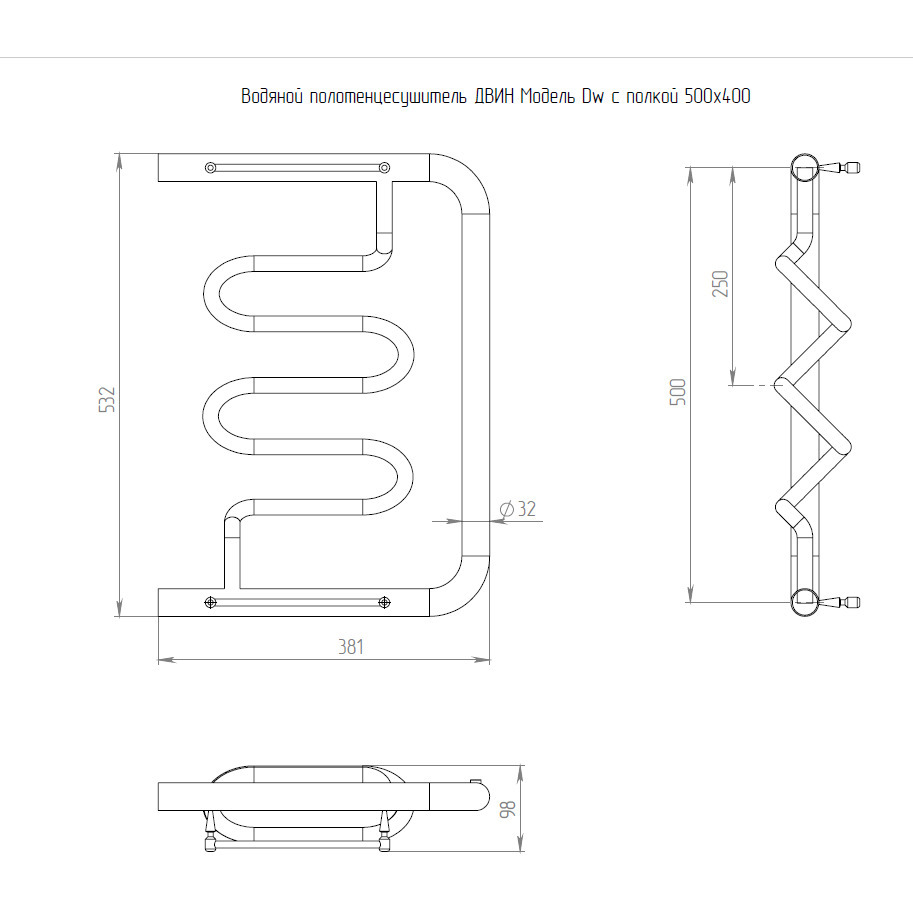 Полотенцесушитель водяной Двин (Dveen) Dw 50х40 см, с полкой, 1х1/2″ К0 полированный хром