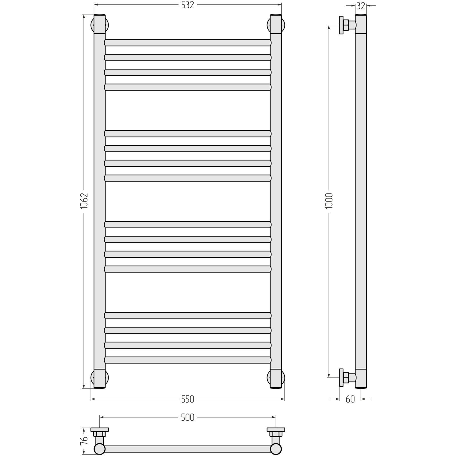 Полотенцесушитель водяной Стилье (Stilje) Минор 0601 500х600 (2+2+2) П Без покрытия 00601-5060