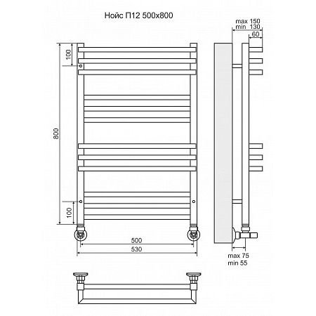 Доставка Полотенцесушитель водяной Terminus (Терминус) Нойс П12 500х800 мм хром из нержавеющей стали из Москва в районы и города ЮВАО, ЮЗАО, ЮАО, Новомосковский АО, Одинцово, Подольск, Щербинка, Троицк, Строительный рынок Славянский мир, 41-й км МКАД, бывшая Мельница, Красногорск, Домодедово, Тёплый стан, Коммунарка, Мосрентген, Видное, Мамыри, Краснознаменск