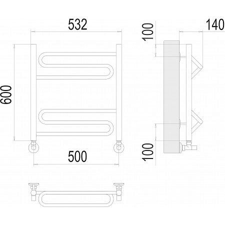Полотенцесушитель водяной Стилье (Stilje) Минор 0601 500х600 (2+2+2) П Без покрытия 00601-5060