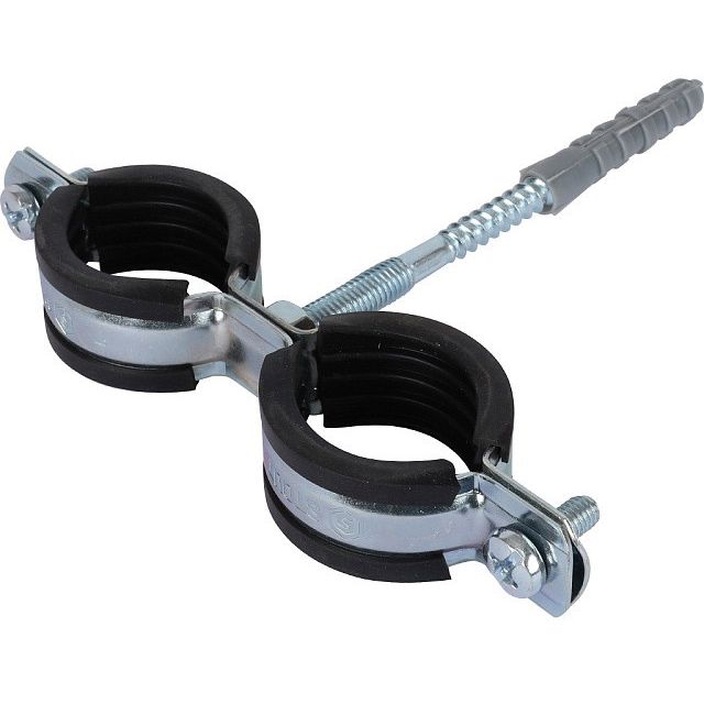 Двойной хомут Stout (Стаут) для труб, комплект: хомут+шпилька шуруп+дюбель пластиковый 1 (32-35) (SAC-0020-200001)
