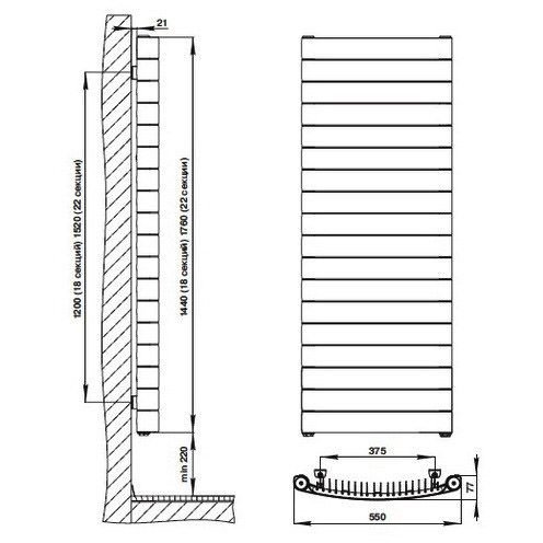 RIFAR серийно выпускает вертикальные радиаторы двух типоразмеров – CONVEX 500 с 18 секциями (высотой 1440 мм) и CONVEX 500 с 22 секциями (высота – 1760 мм). Теплоотдача этих приборов составляет 1782 и 2176 Вт, соответственно, масса моделей – 31,3 и 38,3 кг. Ширина обеих моделей – 550 мм.
