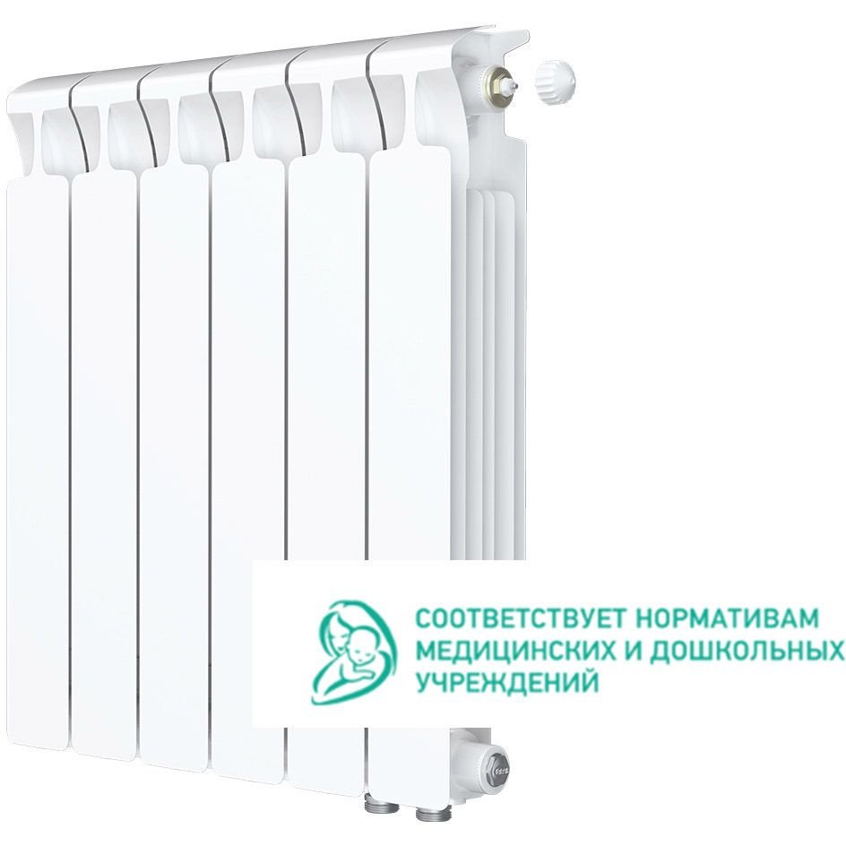 Радиатор биметаллический Rifar (Рифар) Monolit Ventil 500 MVR 6 секций нижнее правое подключение белый RAL9016