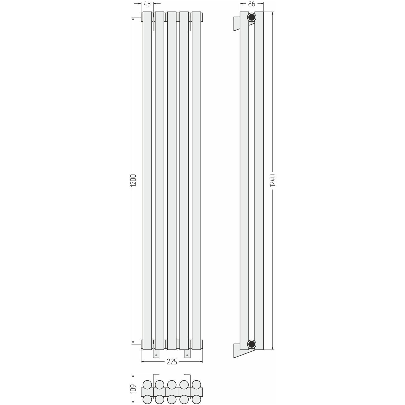 Радиатор двухрядный глухой Сунержа (Sunerga) Эстет-11 EU50 1200х225 мм 5 секций 00-0312-1205