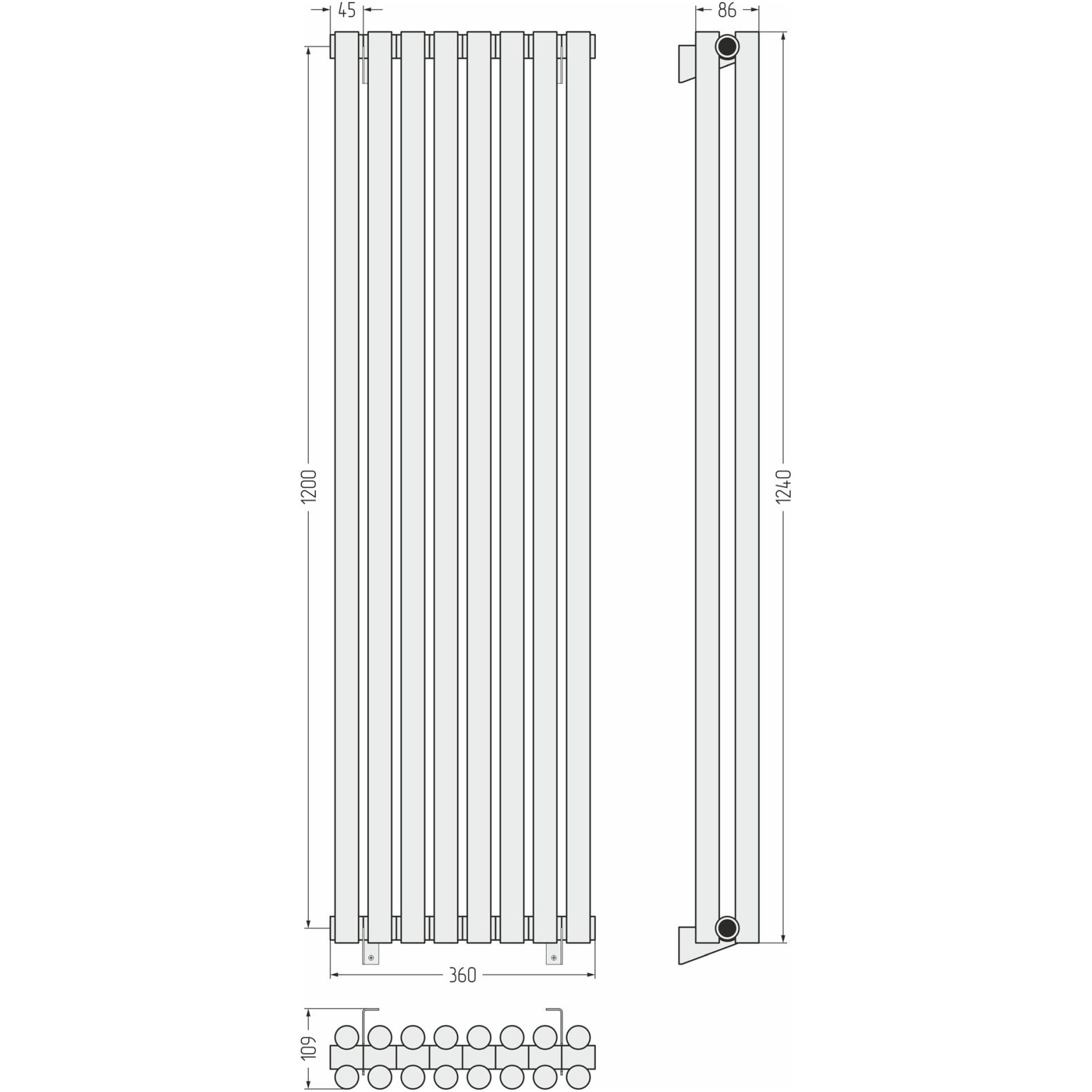 Радиатор двухрядный глухой Сунержа (Sunerga) Эстет-11 1200х360 мм 8 секций 071-0302-1208