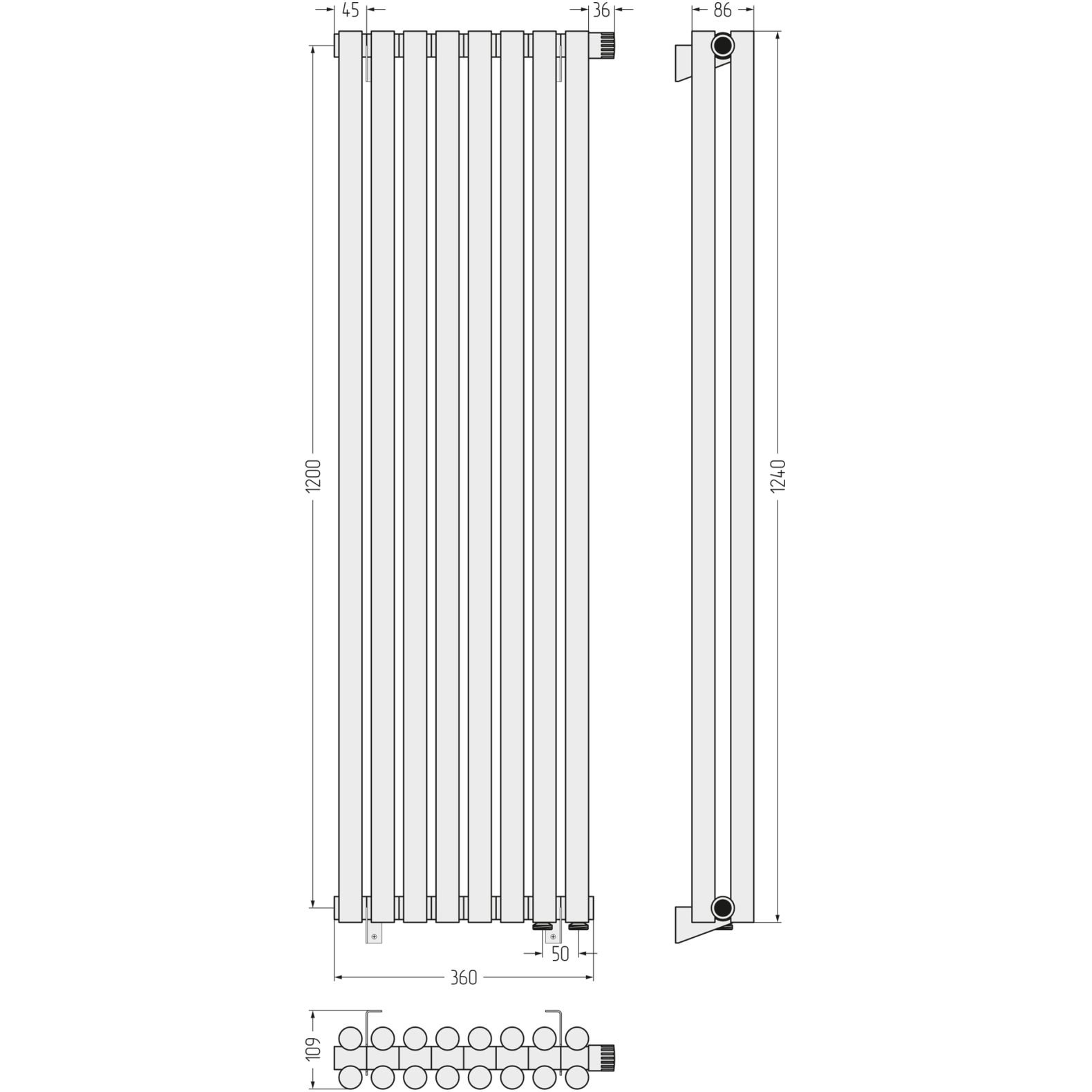 Радиатор двухрядный глухой Сунержа (Sunerga) Эстет-11 EU50 1200х360 мм 8 секций 31-0312-1208