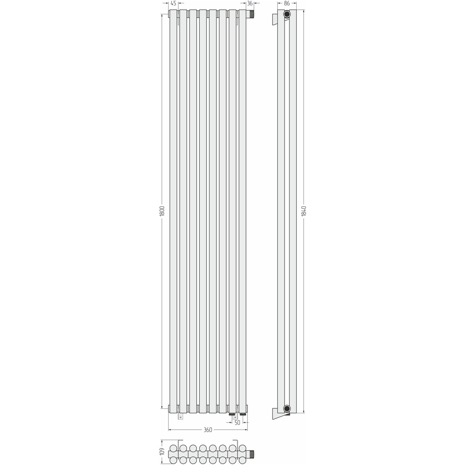 Радиатор двухрядный глухой Сунержа (Sunerga) Эстет-11 EU50 1800х360 мм 8 секций 31-0312-1808