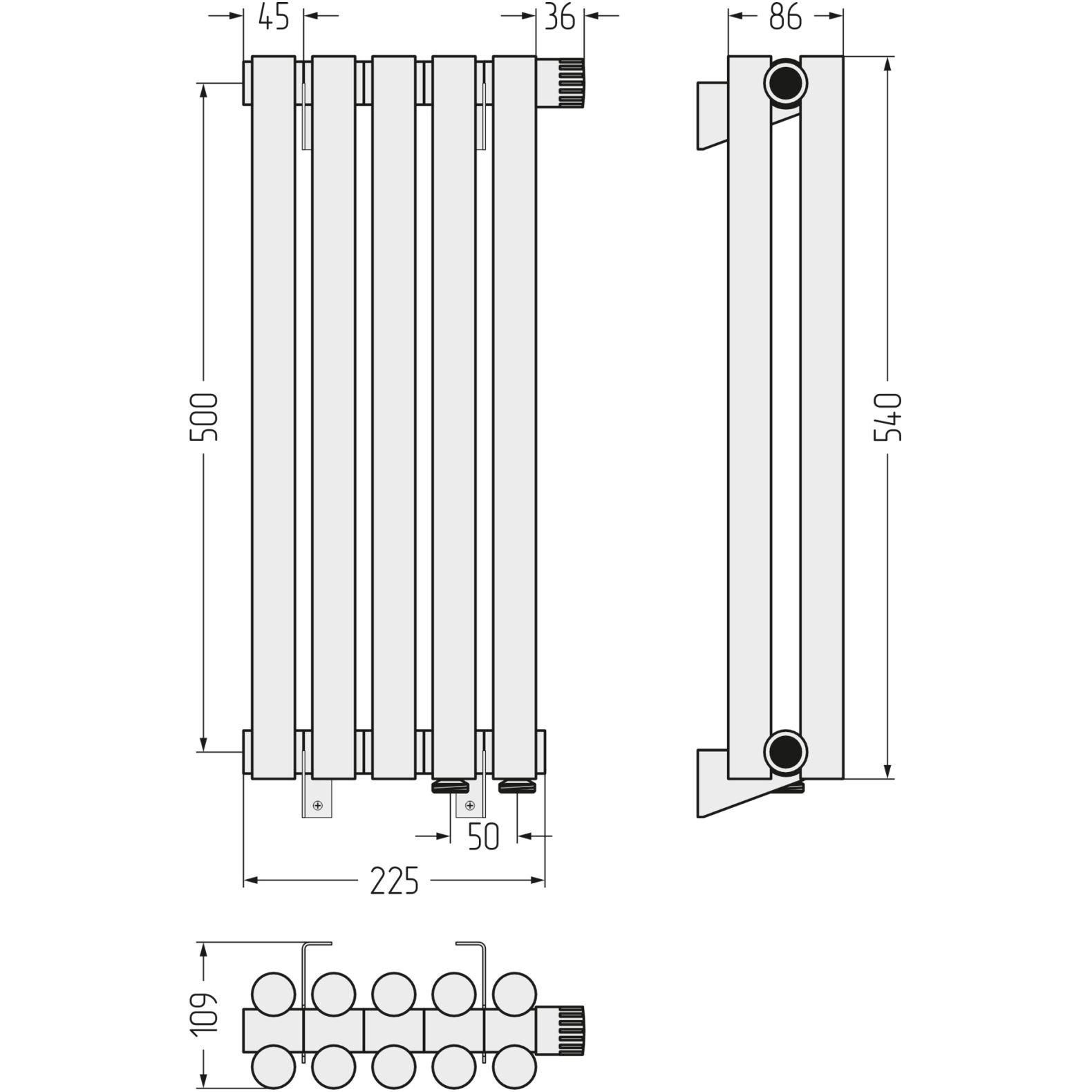 Радиатор однорядный глухой Сунержа (Sunerga) Эстет-1 EU50 правый 1800х225 мм 5 секций 30-0311-1805
