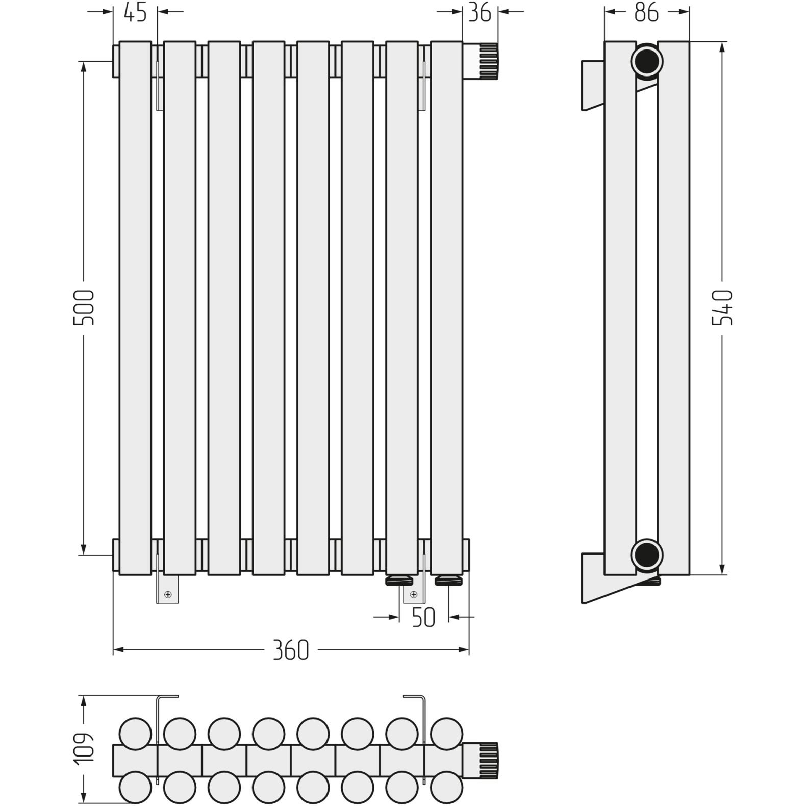 Радиатор двухрядный глухой Сунержа (Sunerga) Эстет-11 EU50 500х360 мм 8 секций 03-0312-5008