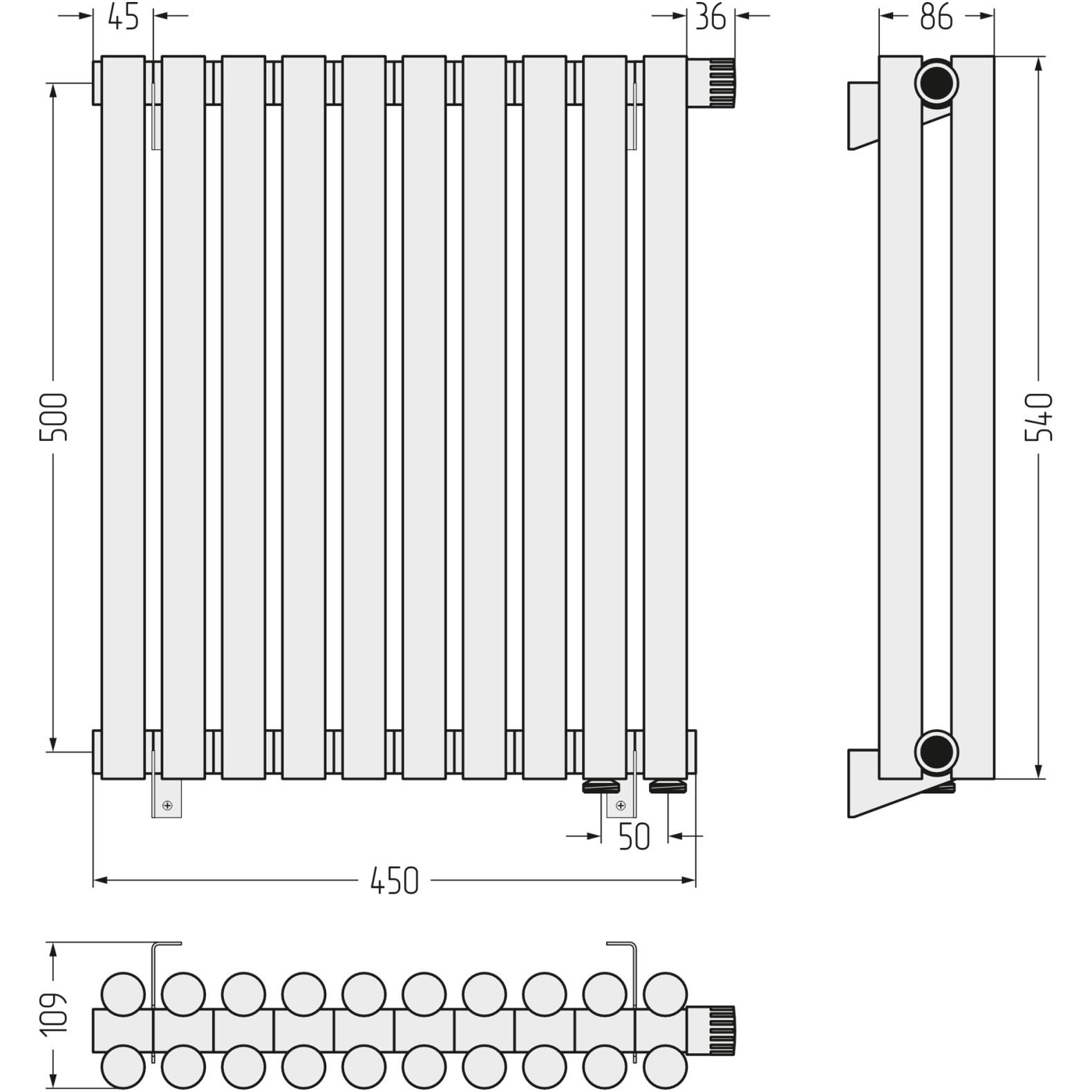 Радиатор двухрядный глухой Сунержа (Sunerga) Эстет-11 EU50 500х450 мм 10 секций 03-0312-5010