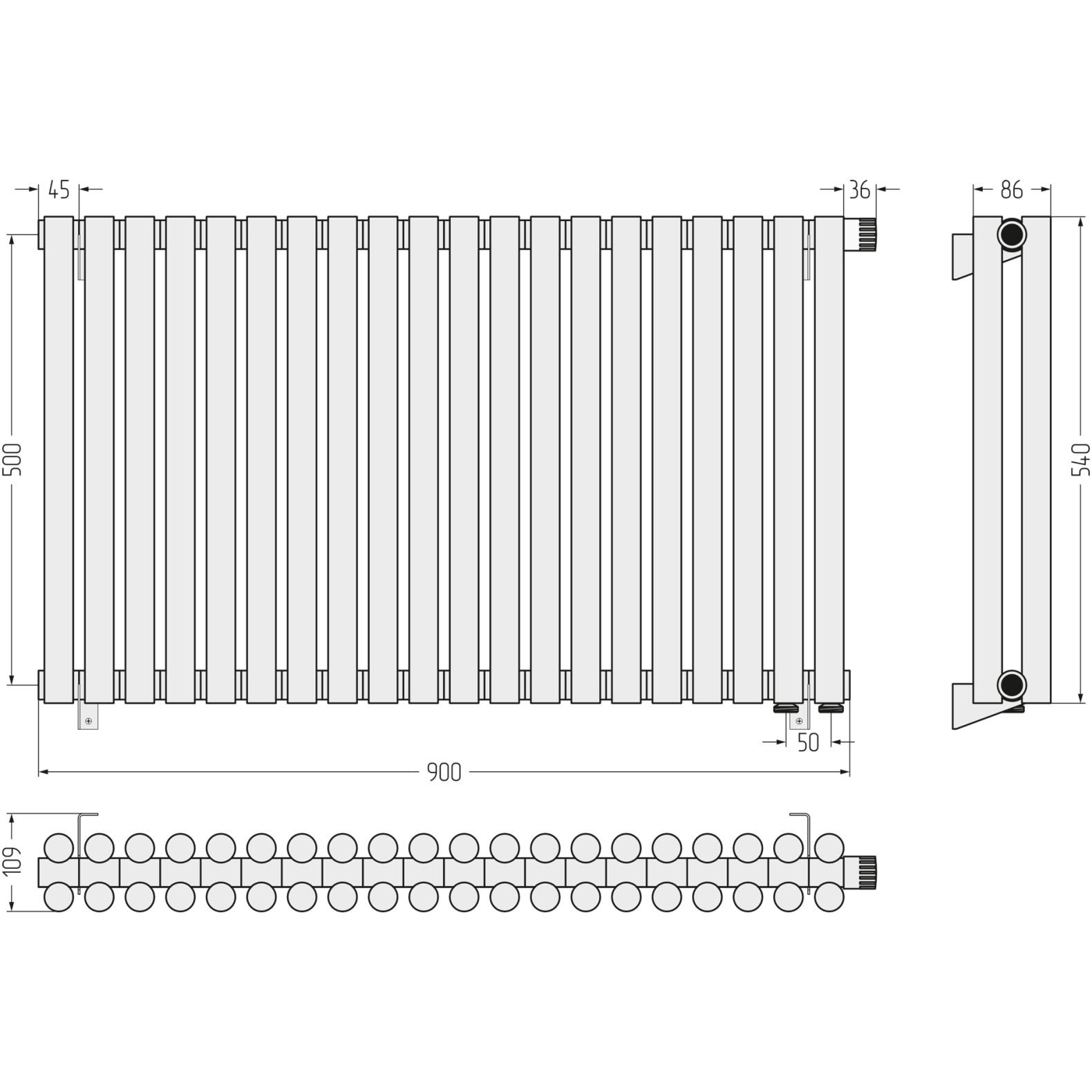 Радиатор двухрядный глухой Сунержа (Sunerga) Эстет-11 EU50 500х900 мм 20 секций 020-0312-5020