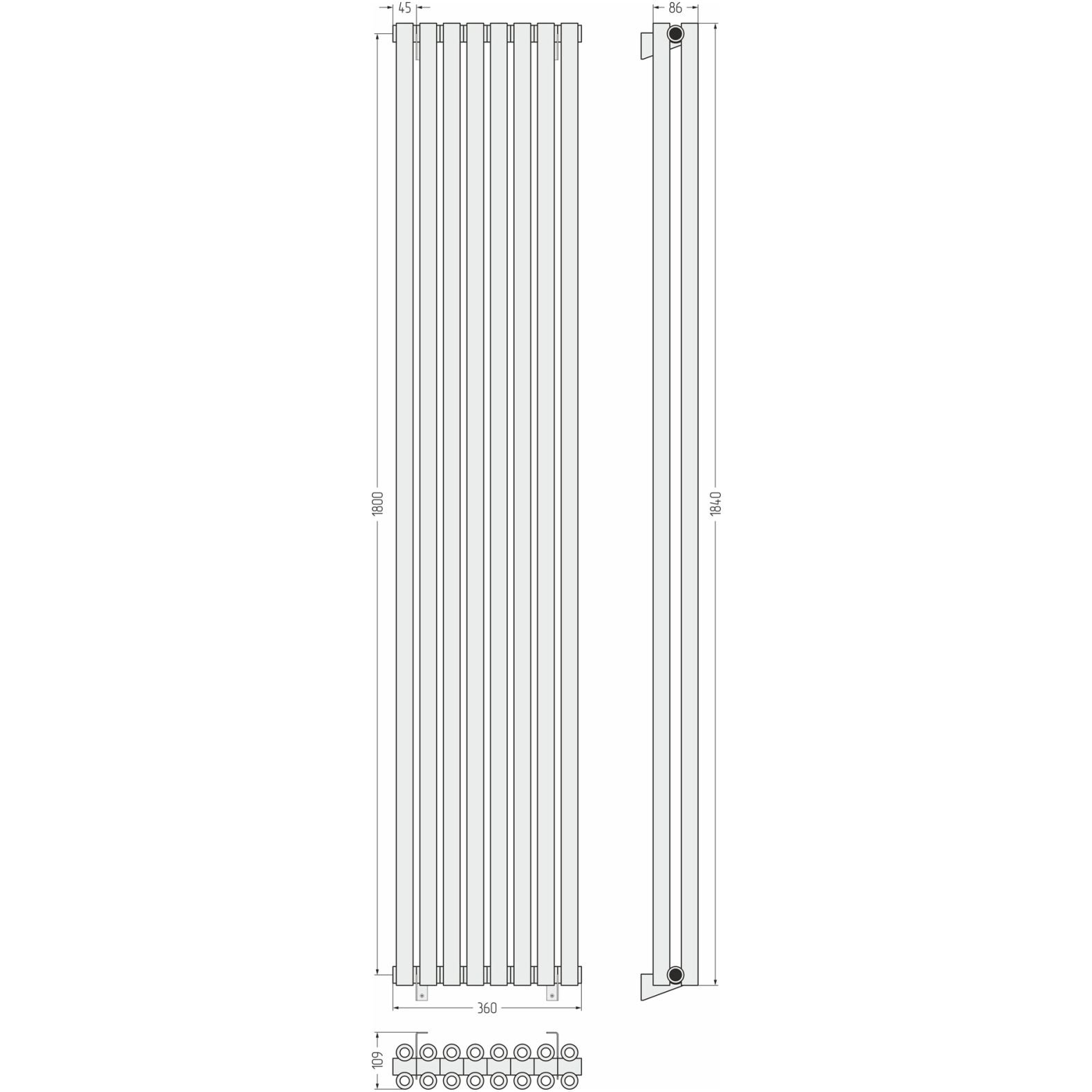 Радиатор двухрядный коаксиальный Сунержа (Sunerga) Эстет-00 1800х360 мм 8 секций 071-0332-1808