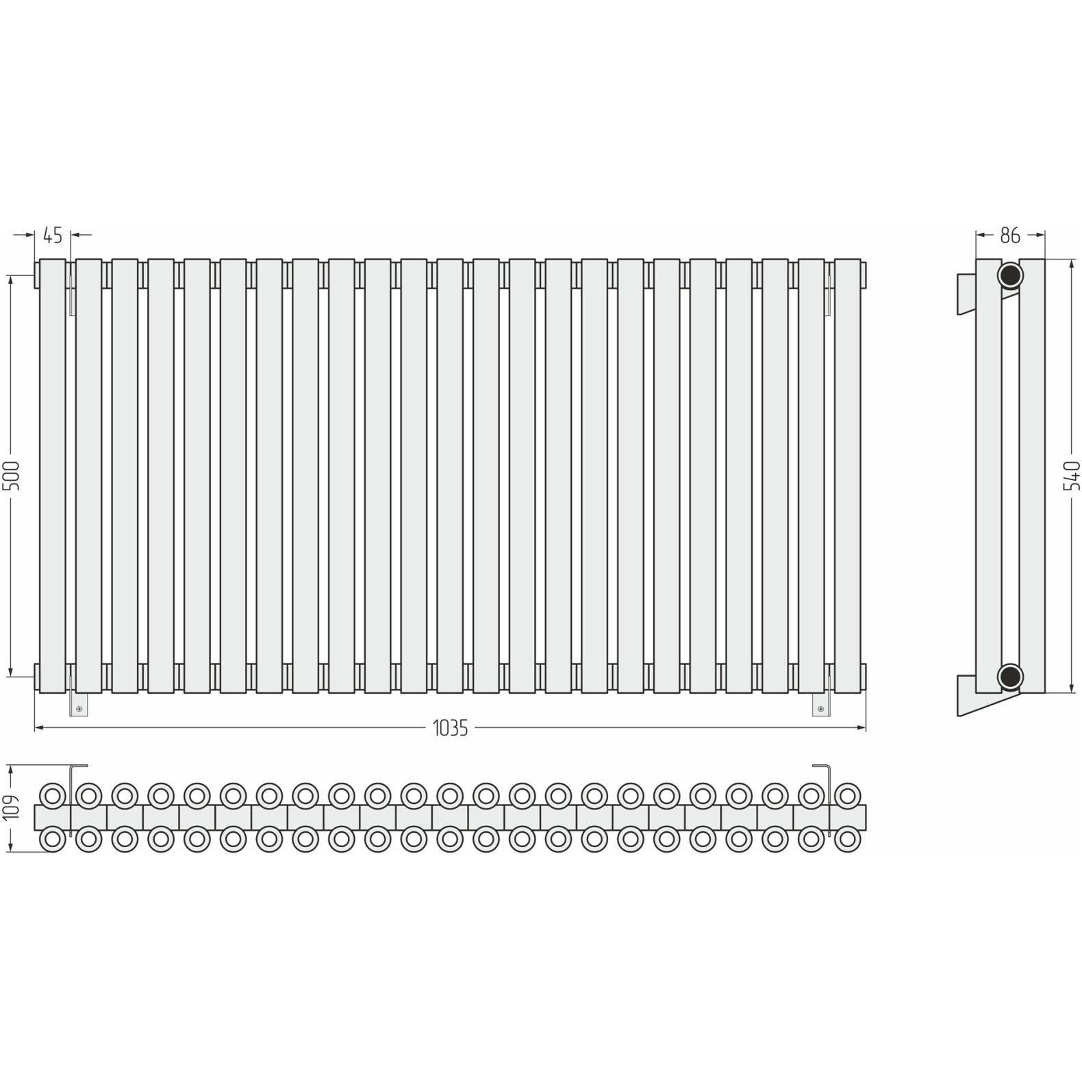 Радиатор двухрядный коаксиальный Сунержа (Sunerga) Эстет-00 EU50 500х1080 мм 24 секции 071-0322-5024