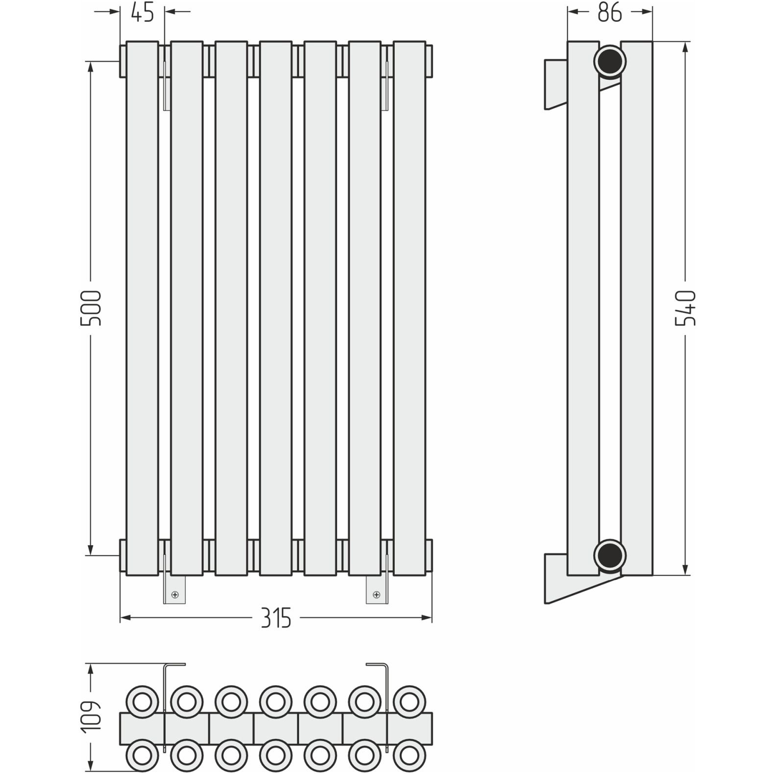 Радиатор двухрядный коаксиальный Сунержа (Sunerga) Эстет-00 500х315 мм 7 секций 12-0332-5007