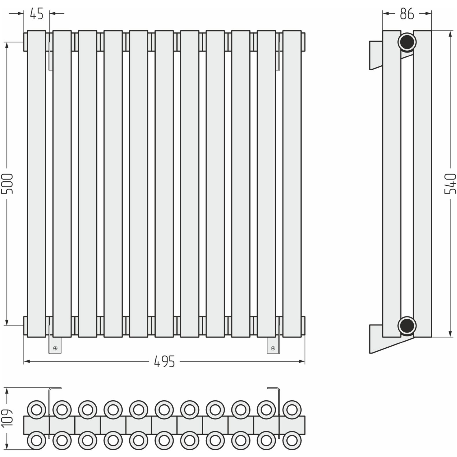 Радиатор двухрядный коаксиальный Сунержа (Sunerga) Эстет-00 500х495 мм 11 секций 12-0332-5011