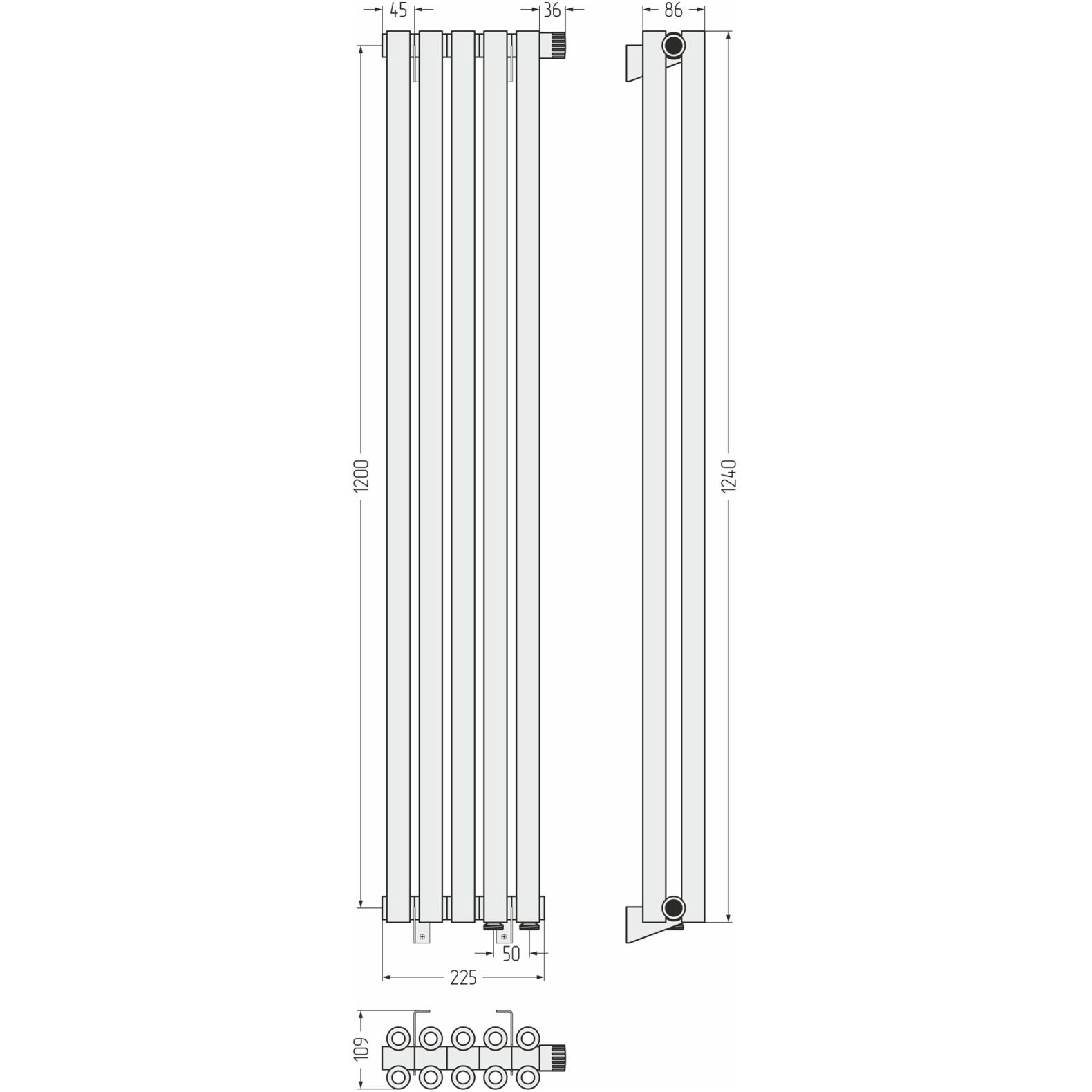 Радиатор однорядный коаксиальный Сунержа (Sunerga) Эстет-0 1200х225 мм 5 секций 03-0331-1205