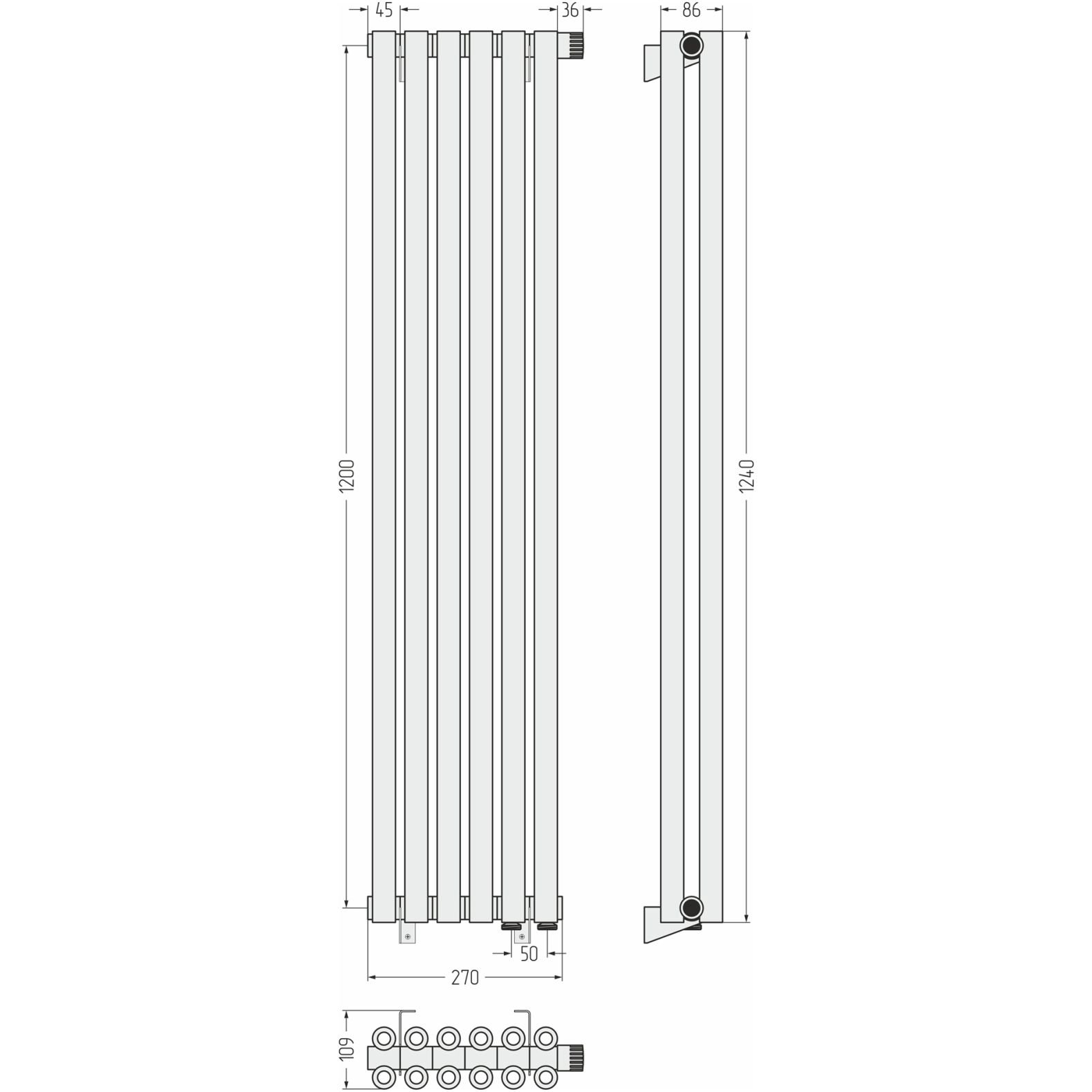 Радиатор двухрядный коаксиальный Сунержа (Sunerga) Эстет-00 EU50 1200х270 мм 6 секций 12-0322-1206