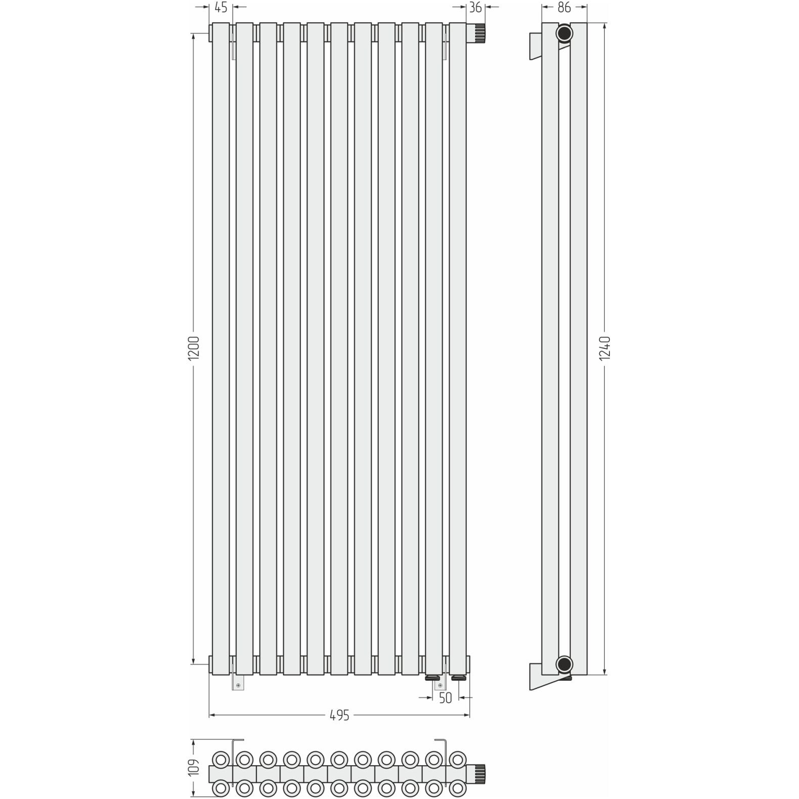 Радиатор двухрядный коаксиальный Сунержа (Sunerga) Эстет-00 EU50 1200х495 мм 11 секций 31-0322-1211