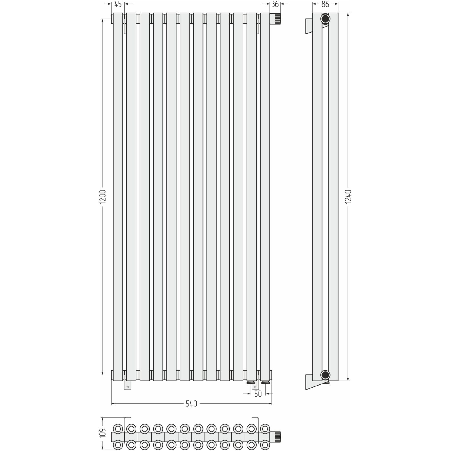 Радиатор двухрядный коаксиальный Сунержа (Sunerga) Эстет-00 EU50 1200х540 мм 12 секций 071-0322-1212