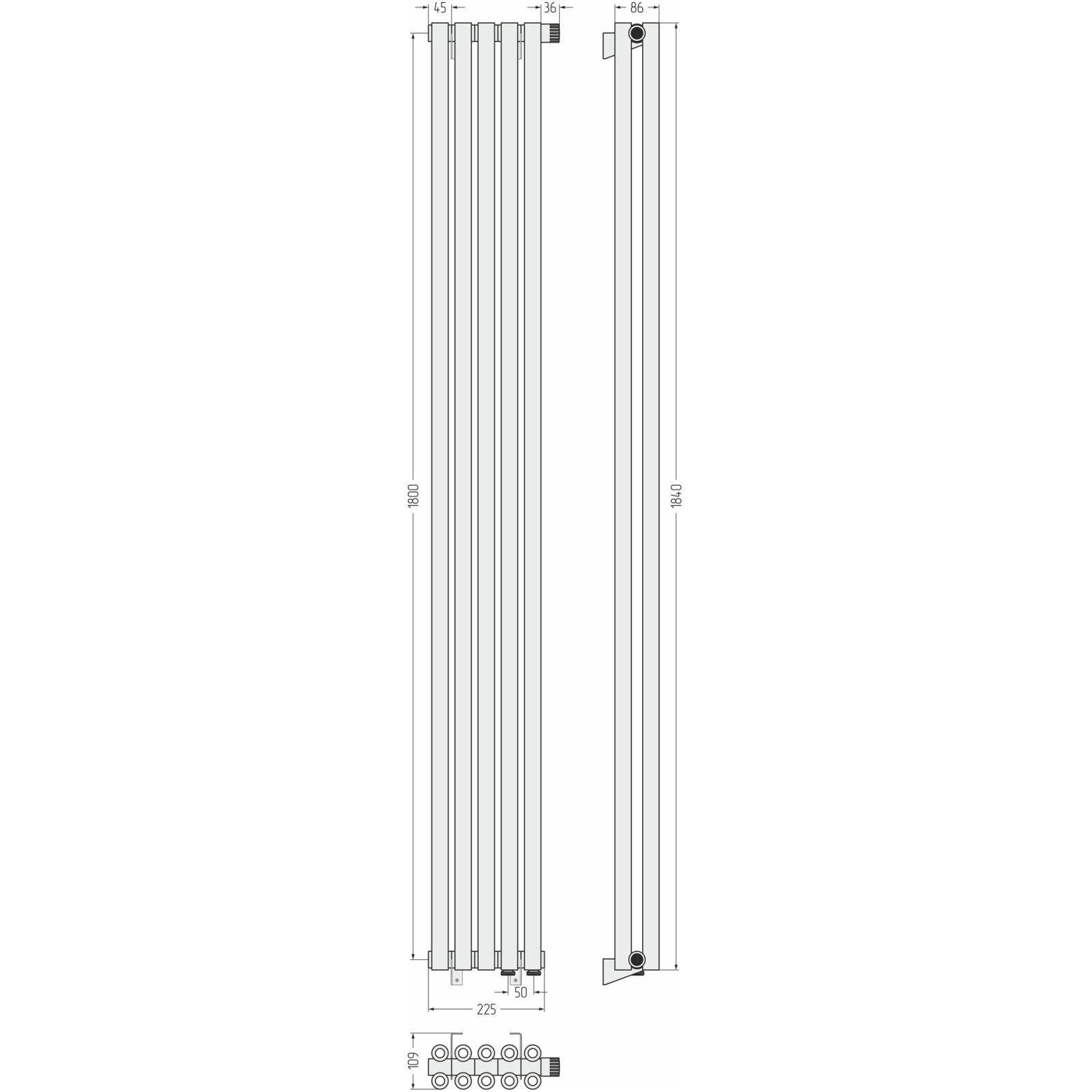 Радиатор двухрядный коаксиальный Сунержа (Sunerga) Эстет-00 EU50 1800х225 мм 5 секций 31-0322-1805