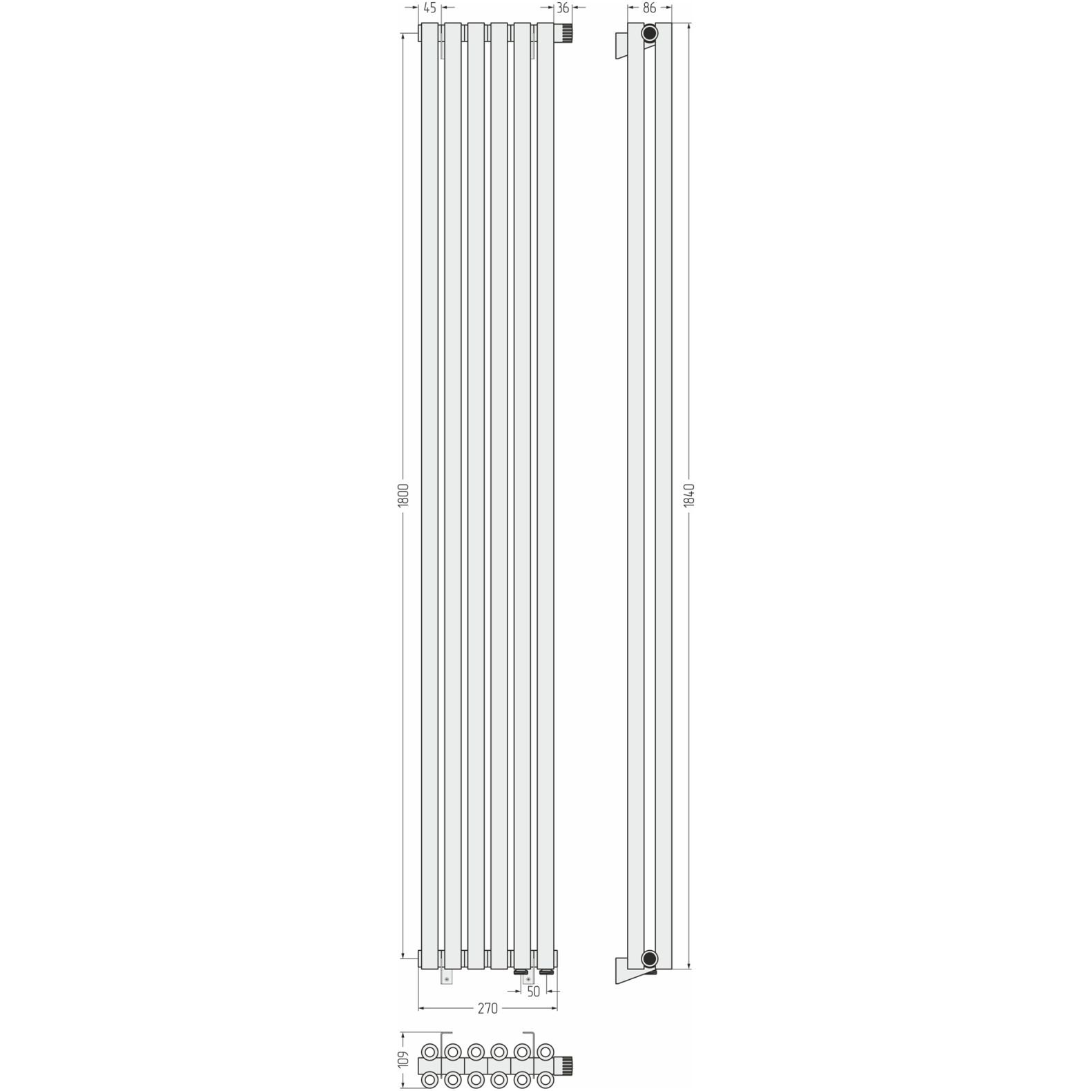Радиатор двухрядный коаксиальный Сунержа (Sunerga) Эстет-00 EU50 1800х270 мм 6 секций 051-0322-1806