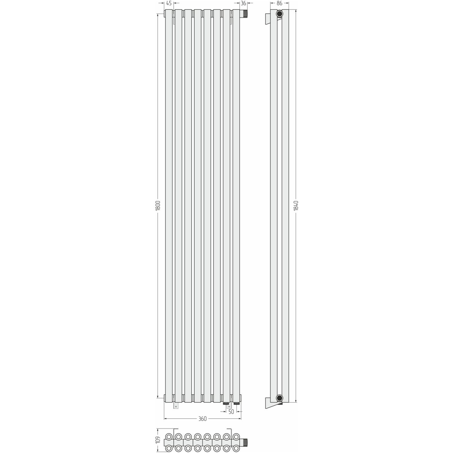 Радиатор двухрядный коаксиальный Сунержа (Sunerga) Эстет-00 EU50 1800х360 мм 8 секций 00-0322-1808