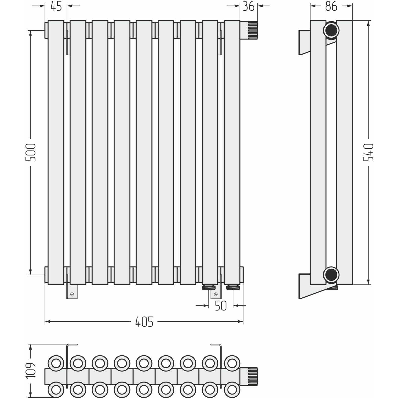 Радиатор двухрядный коаксиальный Сунержа (Sunerga) Эстет-00 EU50 500х405 мм 9 секций 020-0322-5009
