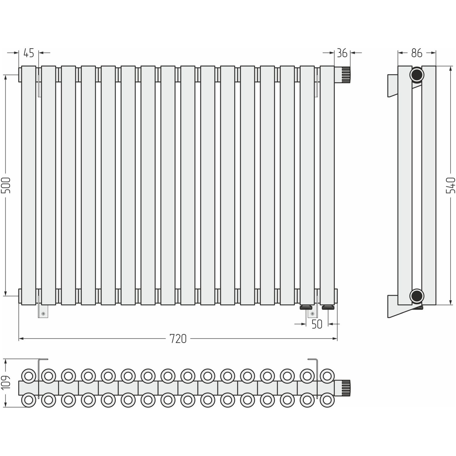 Радиатор двухрядный коаксиальный Сунержа (Sunerga) Эстет-00 EU50 500х720 мм 16 секций 31-0322-5016
