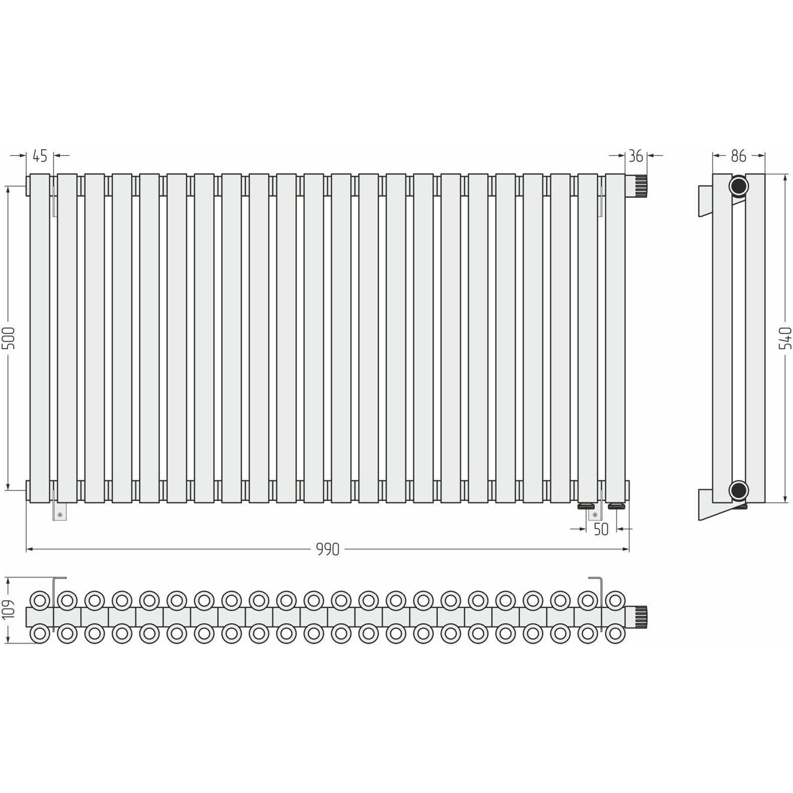 Радиатор двухрядный коаксиальный Сунержа (Sunerga) Эстет-00 EU50 500х990 мм 22 секции 15-0322-5022