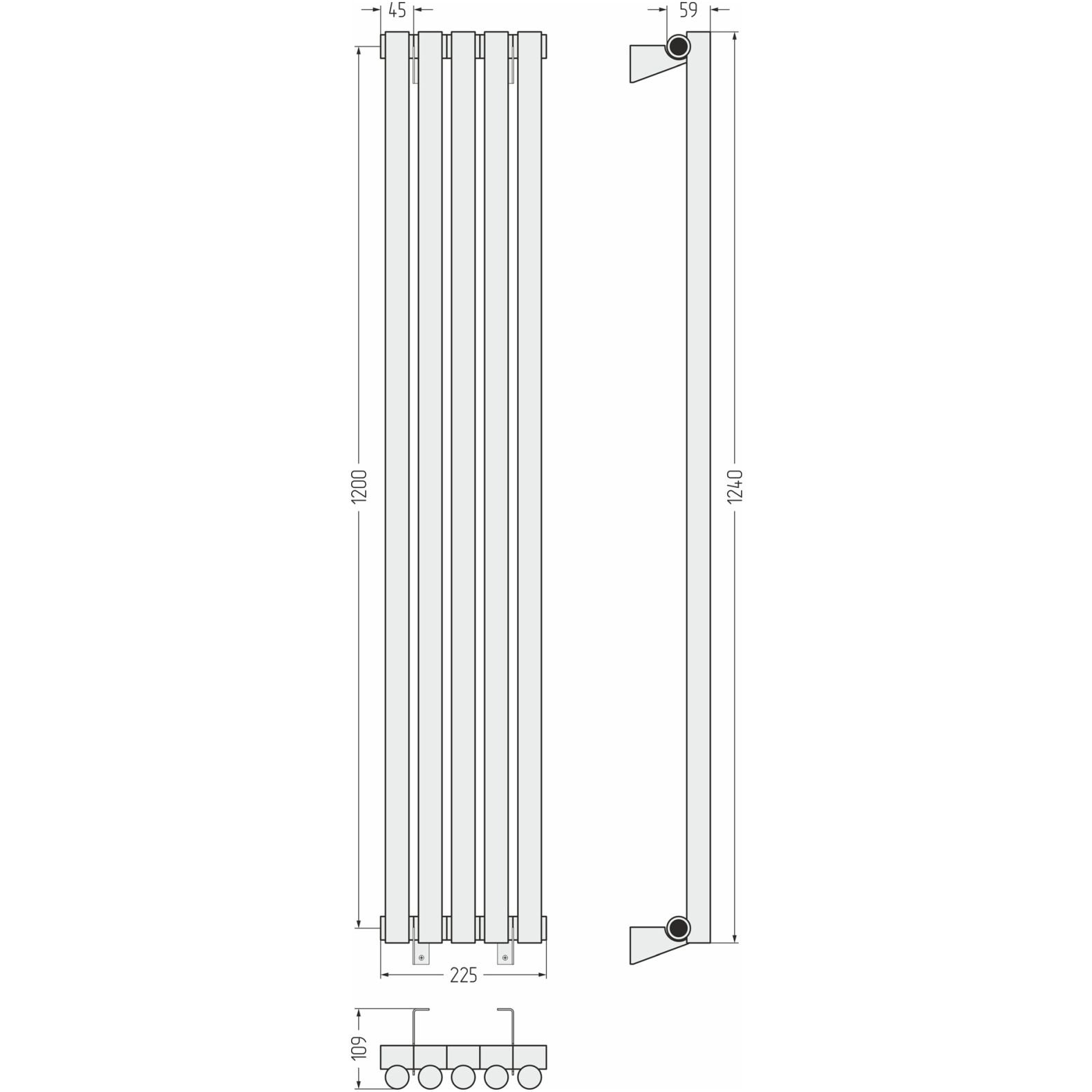 Радиатор однорядный глухой Сунержа (Sunerga) Эстет-1 1200х225 мм 5 секций 31-0301-1205