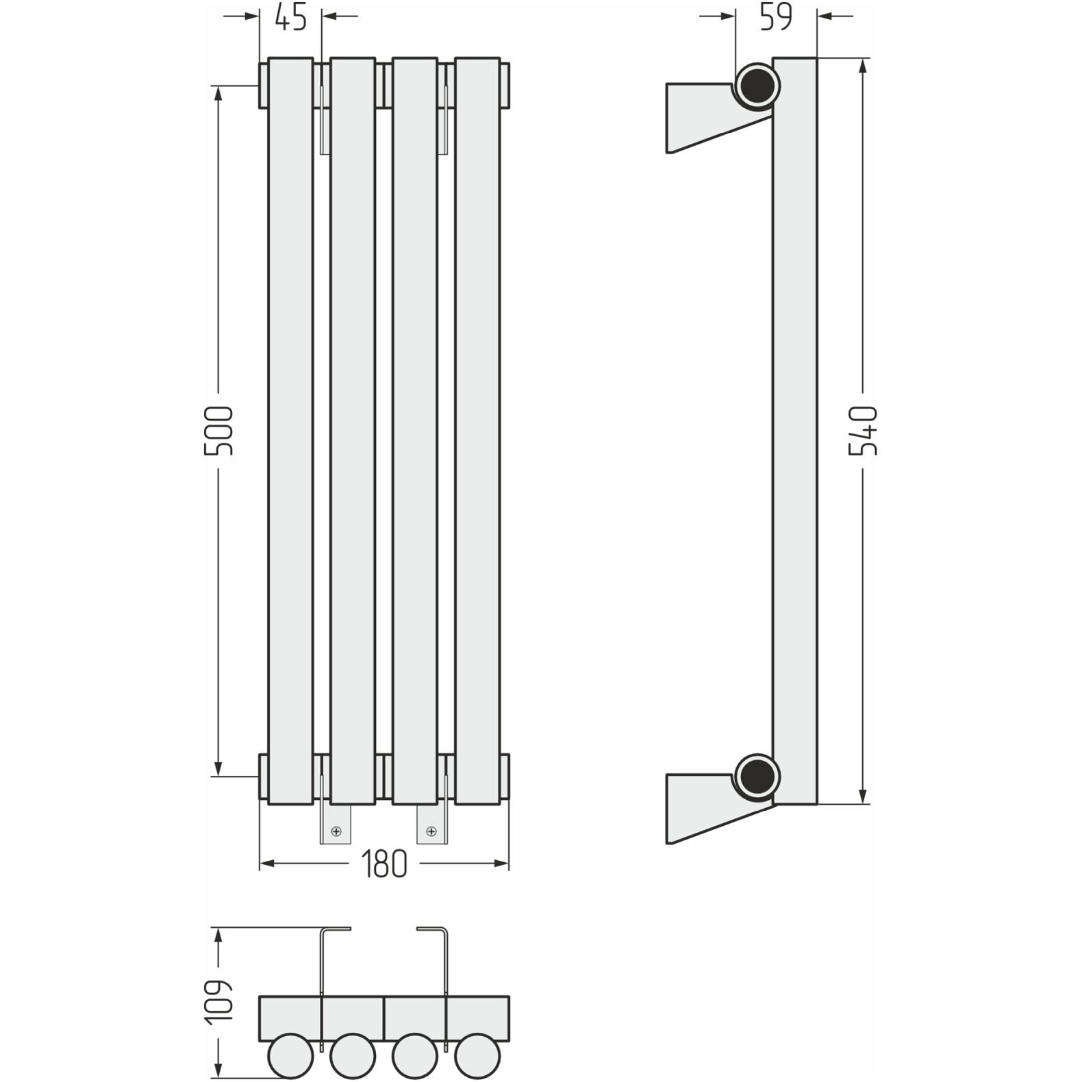 Радиатор однорядный глухой Сунержа (Sunerga) Эстет-1 500х180 мм 4 секции 31-0301-5004