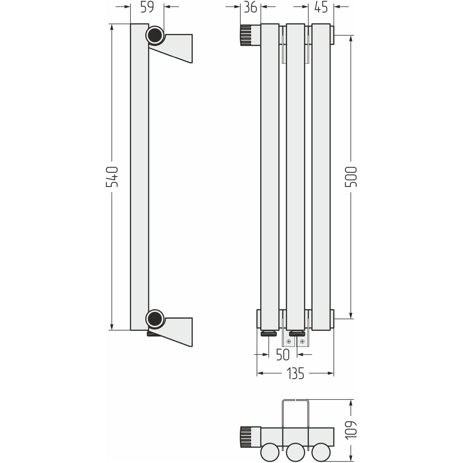 Радиатор однорядный глухой Сунержа (Sunerga) Эстет-1 EU50 левый 500х135 мм 3 секции 03-0310-5003