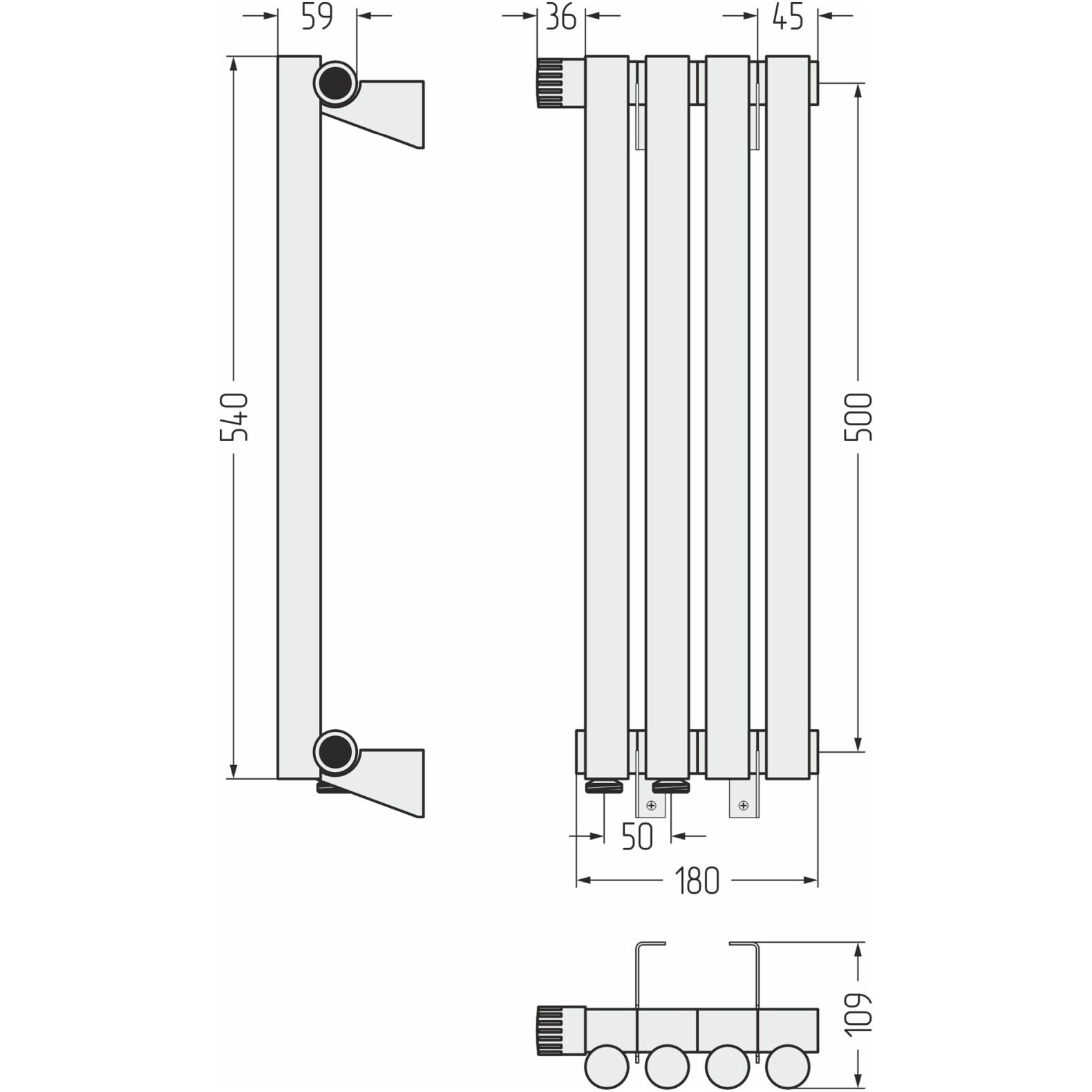 Радиатор однорядный глухой Сунержа (Sunerga) Эстет-1 EU50 левый 500х180 мм 4 секции 30-0310-5004