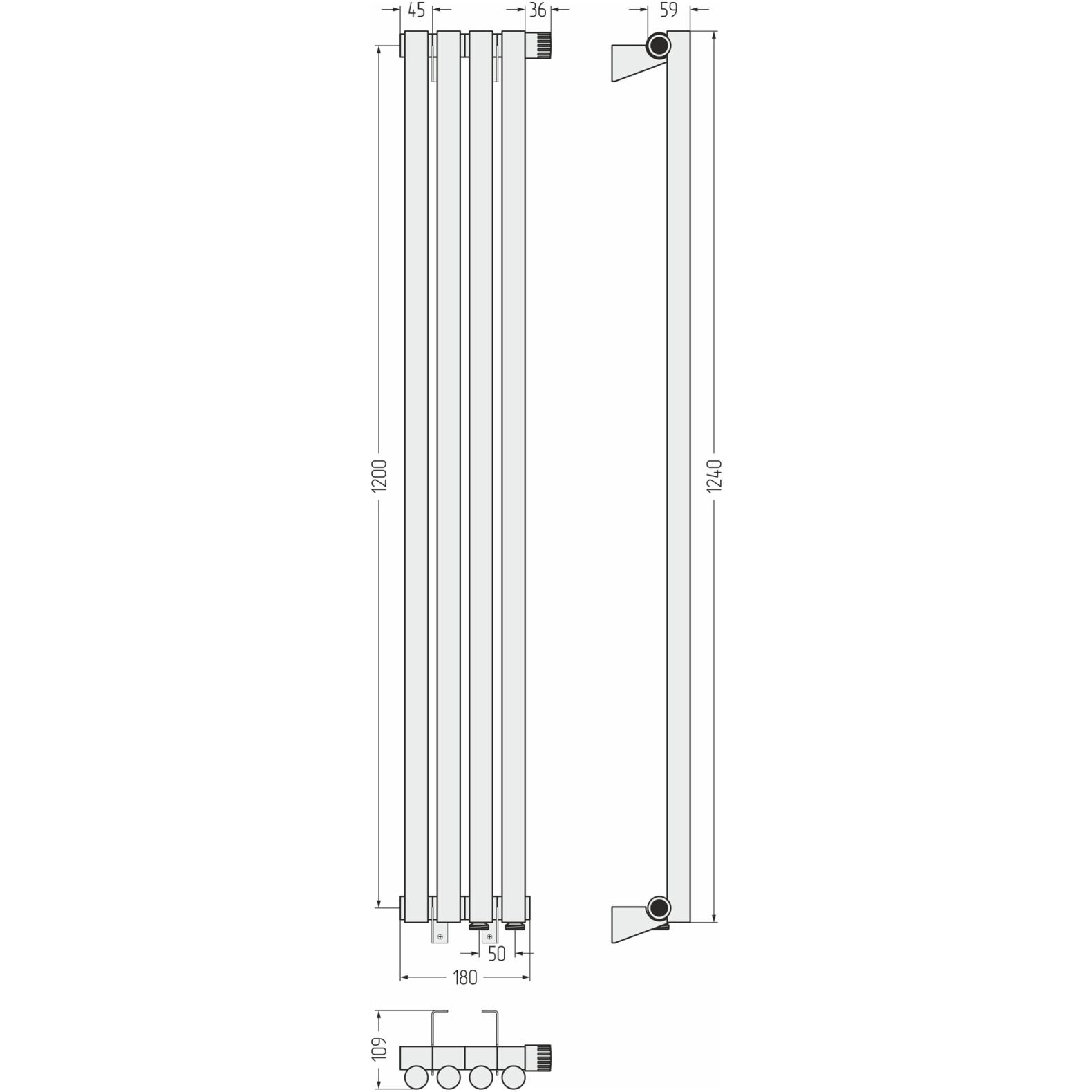 Радиатор однорядный глухой Сунержа (Sunerga) Эстет-1 EU50 правый 1200х180 мм 4 секции 12-0311-1204
