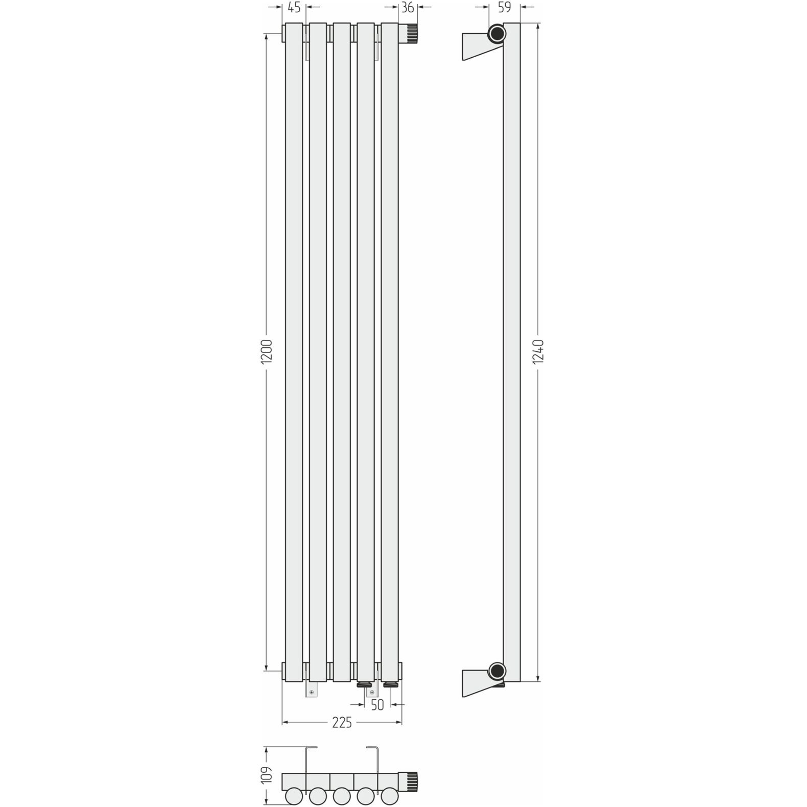 Радиатор однорядный глухой Сунержа (Sunerga) Эстет-1 EU50 правый 1200х225 мм 5 секций 30-0311-1205