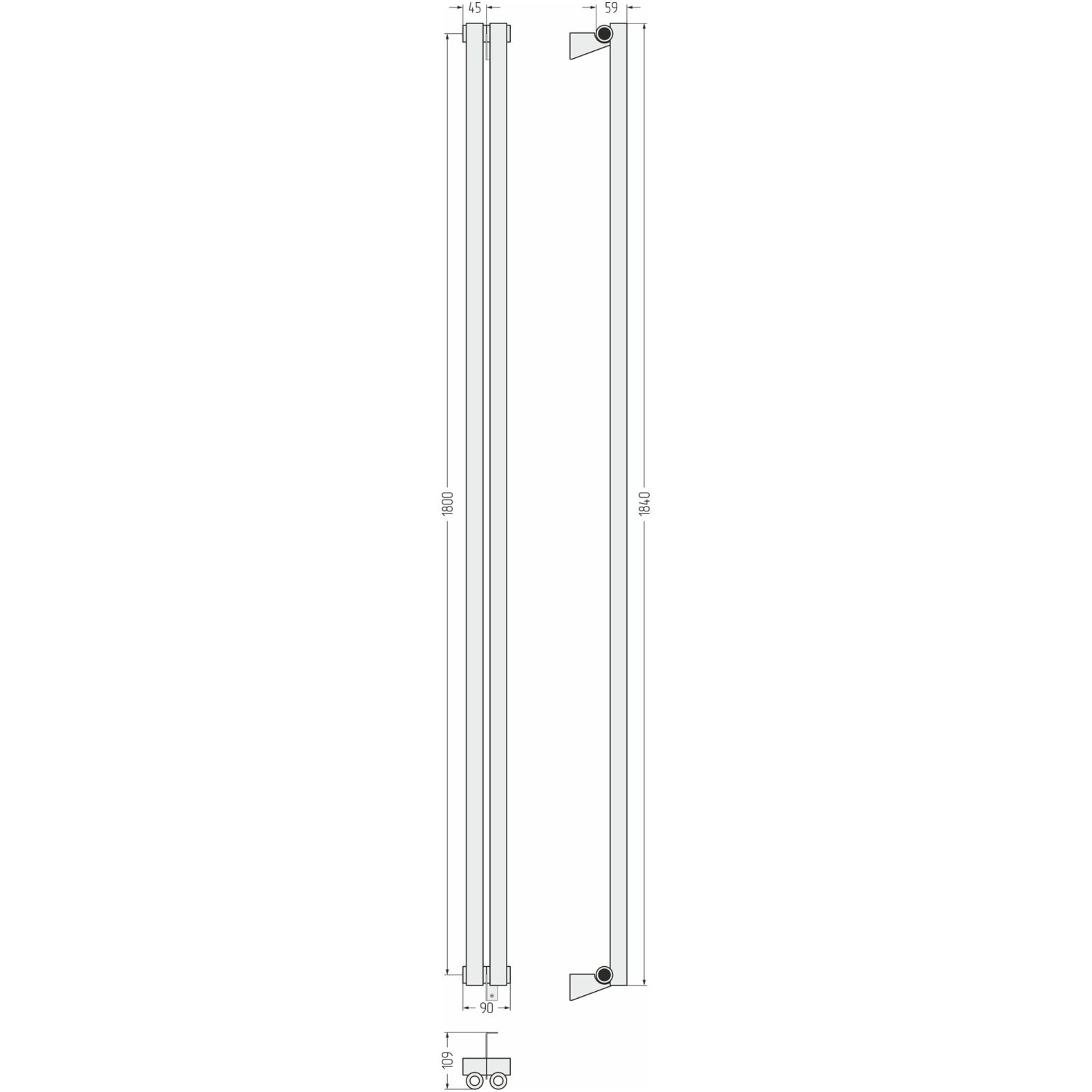 Радиатор однорядный коаксиальный Сунержа (Sunerga) Эстет-0 1800х90 мм 2 секции 03-0331-1802