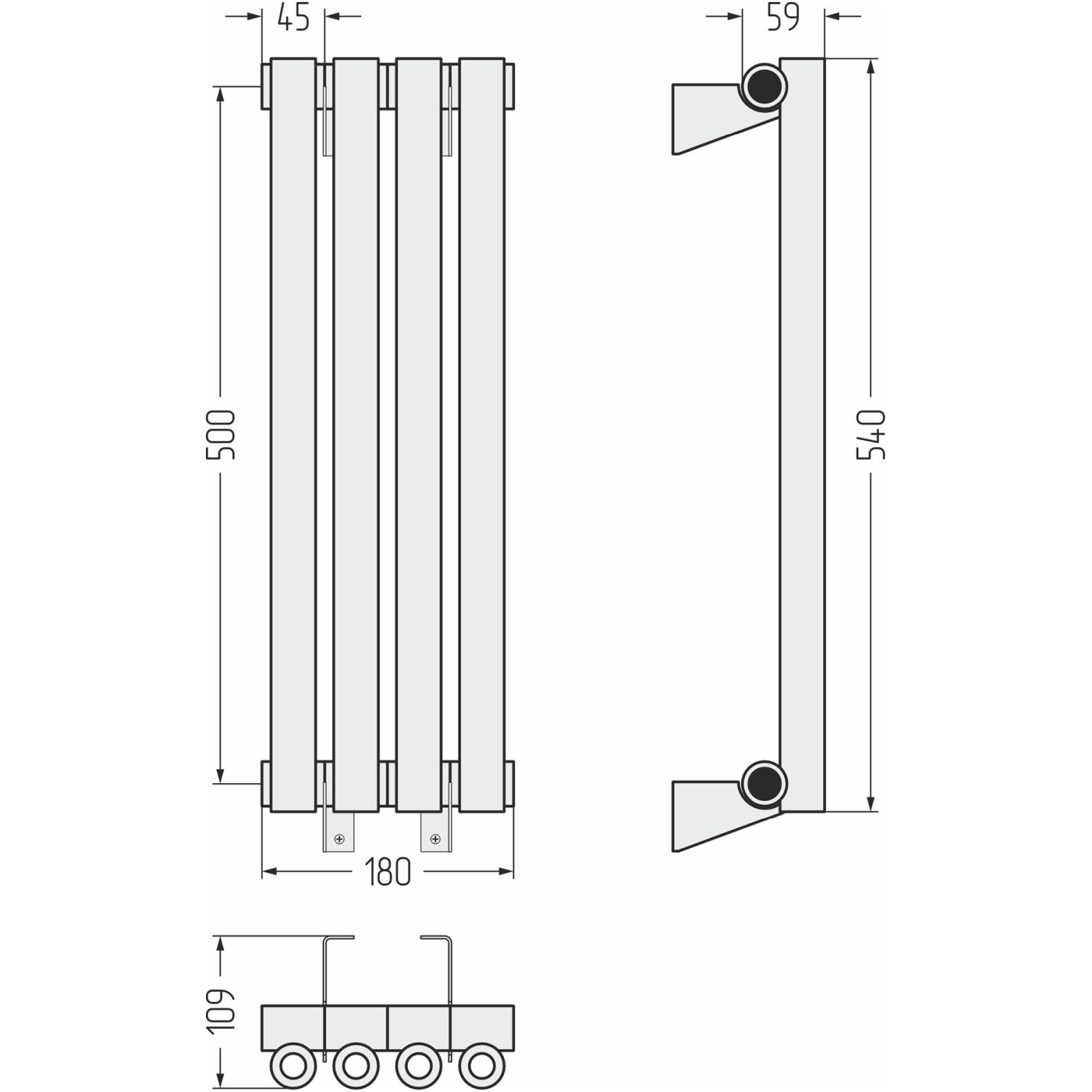 Радиатор однорядный коаксиальный Сунержа (Sunerga) Эстет-0 500х180 мм 4 секции 12-0331-5004